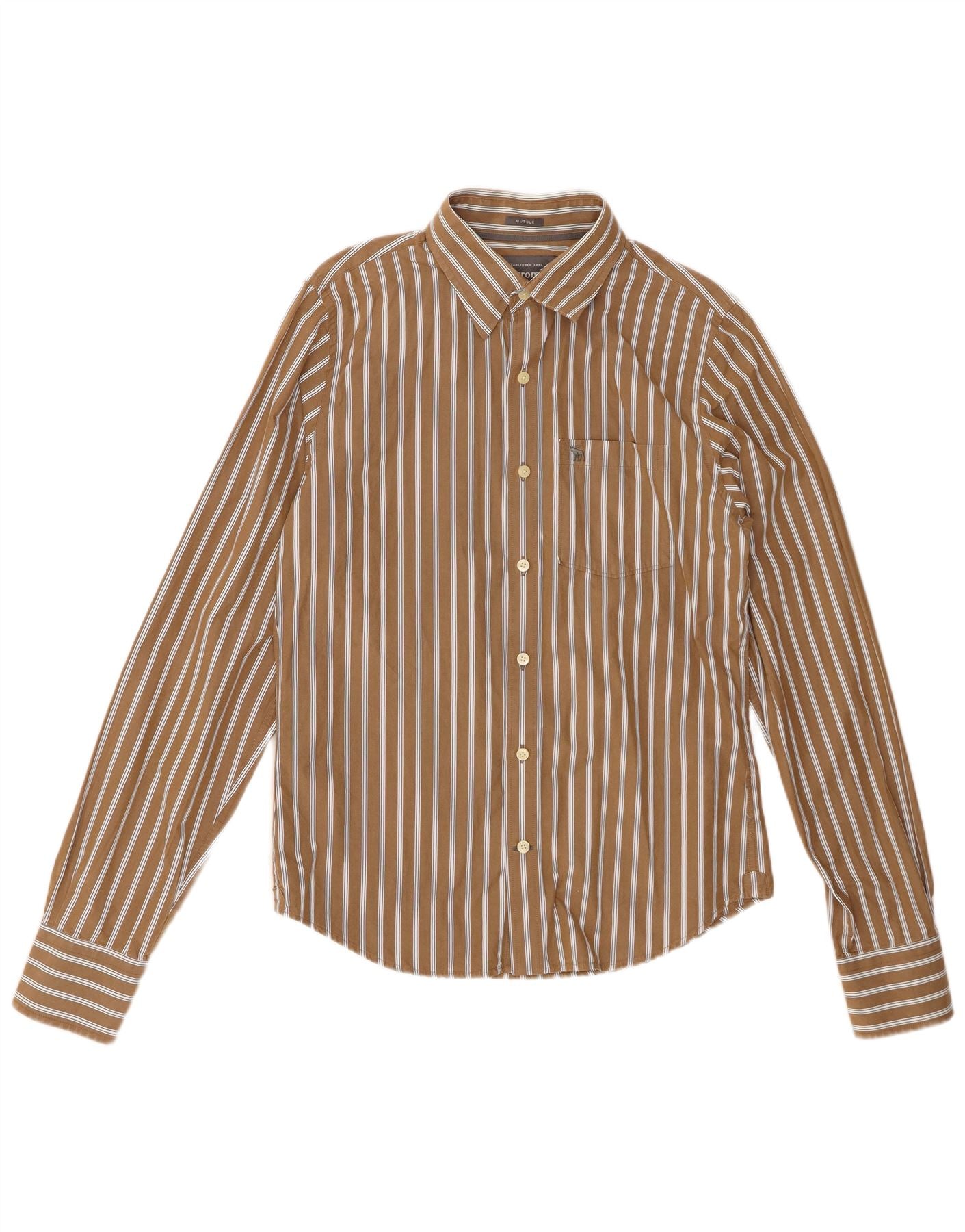 ABERCROMBIE & FITCH Chemise Muscle Homme Coton Rayé Marron Moyen