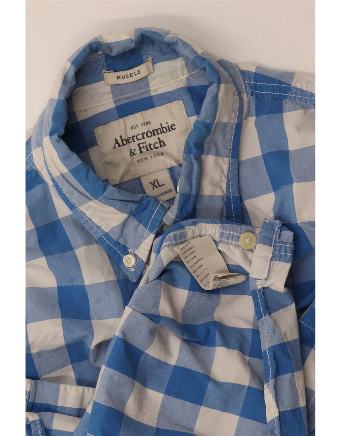 ABERCROMBIE & FITCH Chemise musclée XL en coton à carreaux bleus pour homme
