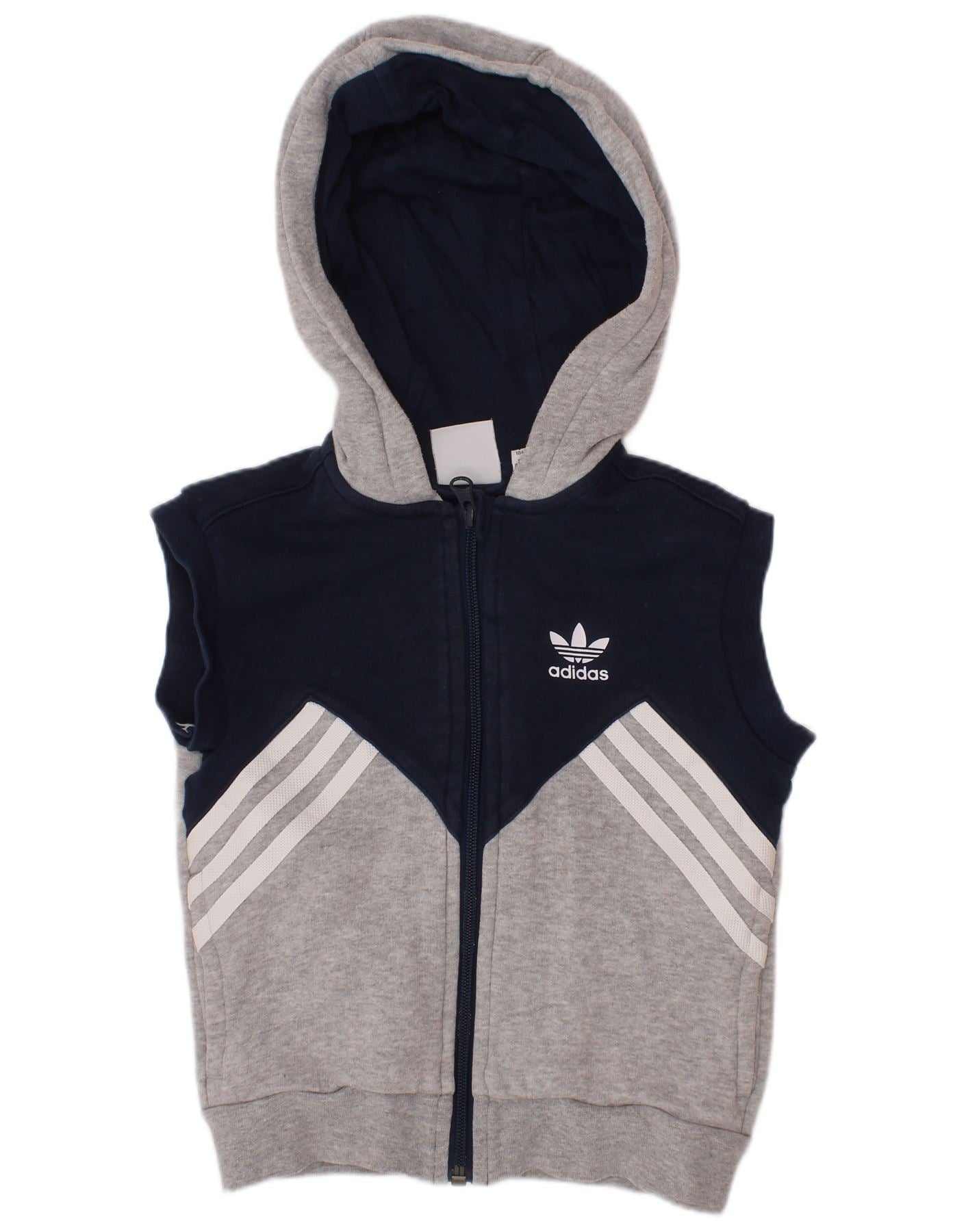 ADIDAS Pull à capuche zippé sans manches pour garçon 3-4 ans Bleu marine Colourblock