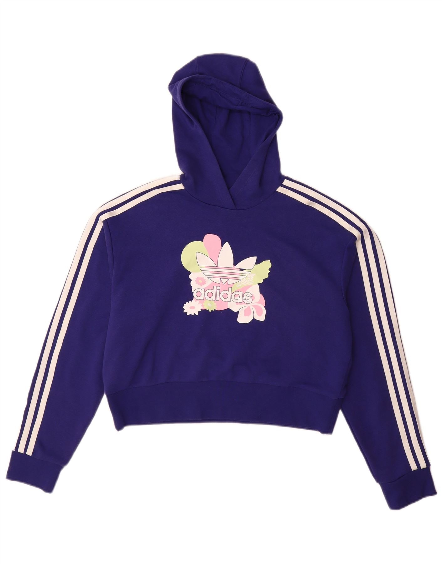 ADIDAS Pull à capuche court graphique pour fille 13-14 ans Violet Floral Coton