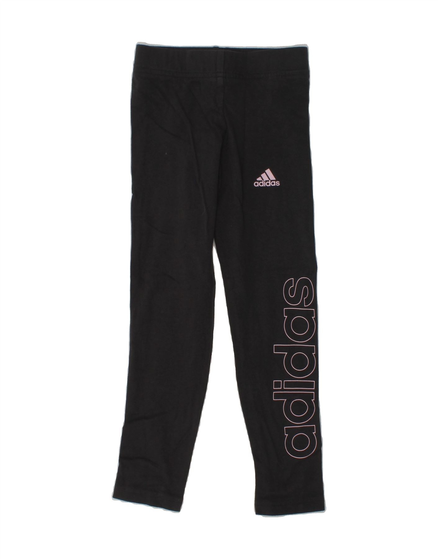ADIDAS Girls Graphic Leggings 5-6 Years Grey Cotton