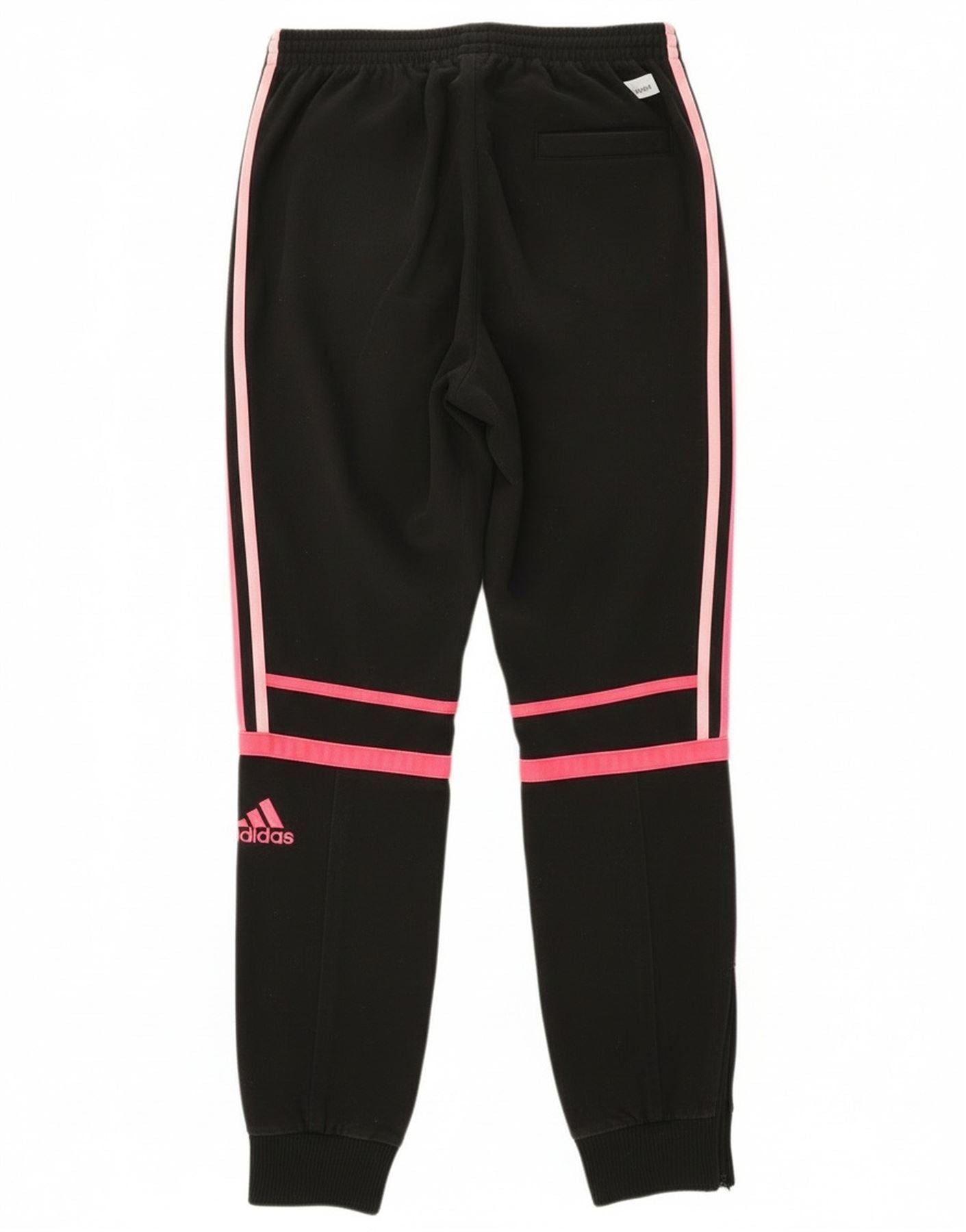 - Description de l'IA : Ce pantalon de survêtement pour fille Adidas est confectionné dans un tissu tricoté noir confortable. Ils présentent des rayures roses audacieuses sur les côtés et un logo Adidas assorti. La coupe régulière offre une liberté de mouvement. Un cordon de serrage à la taille assure un ajustement sûr. Les chevilles à revers avec fermetures éclair offrent un confort réglable. Des poches pratiques complètent le design, parfaites pour une tenue sportive ou décontractée.