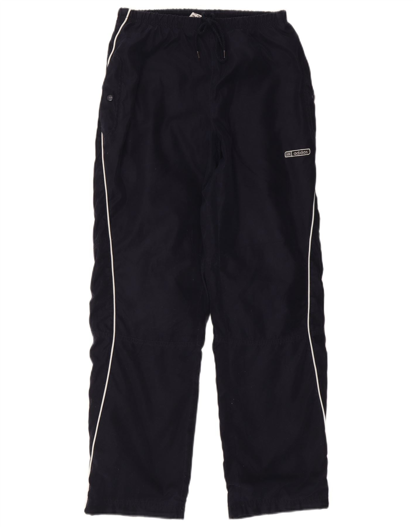 - Description de l'IA : Ce pantalon coupe-vent Adidas pour hommes est fabriqué à 100 % en polyester, offrant une texture légère et tissée. Il présente une coupe régulière confortable avec une taille élastiquée et une fermeture à cordon. Le design bleu marine comprend des poches pratiques et un subtil logo Adidas. Un passepoil blanc court sur les côtés, ajoutant un détail sportif classique. Le tissu respirant Climalite assure le confort lors des activités sportives.
