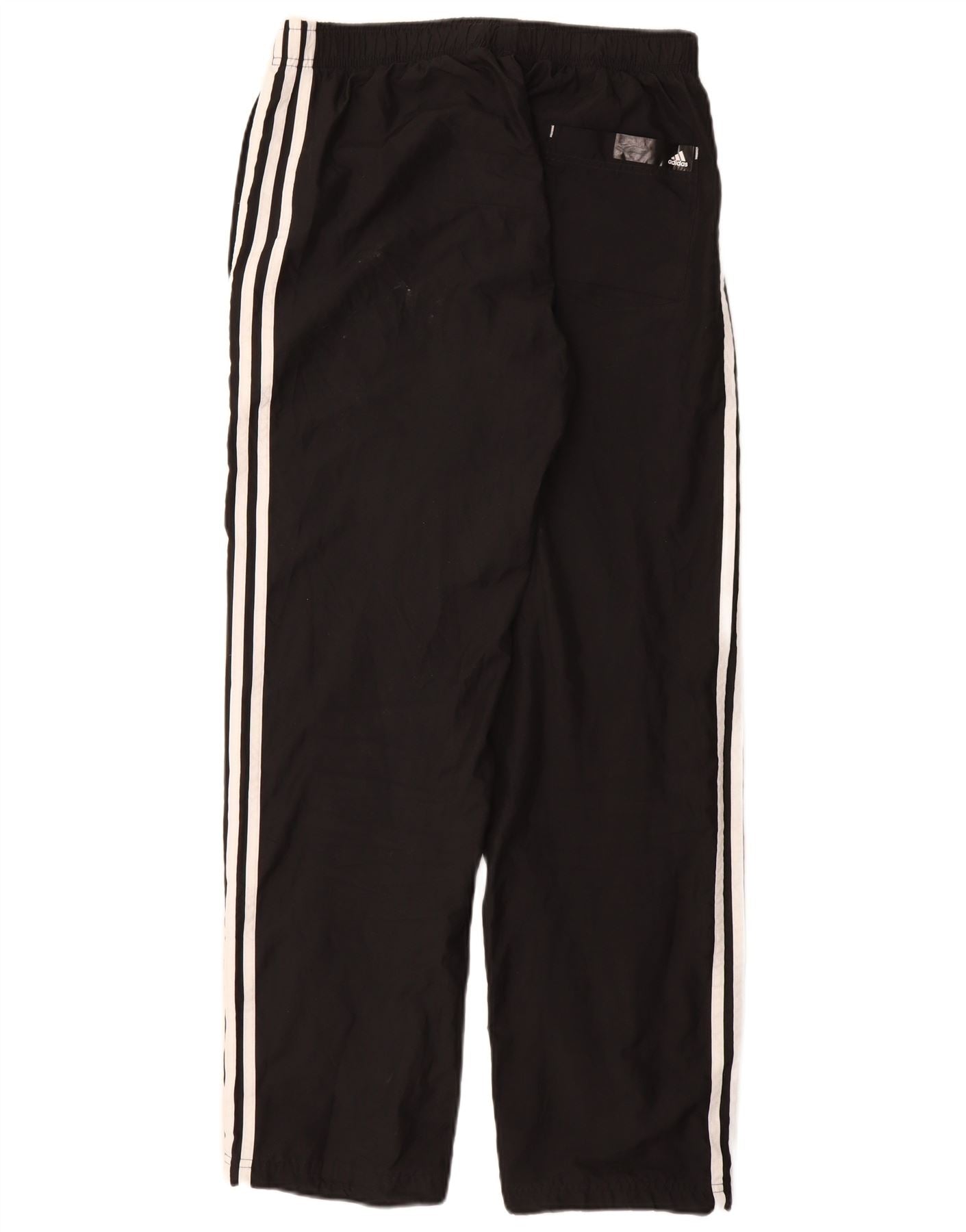 - Description de l'IA : Ce pantalon de survêtement Adidas pour homme est confectionné dans un tissu tissé noir léger. Ils présentent un style à enfiler confortable avec une taille élastique. La coupe régulière assure une liberté de mouvement. Trois bandes blanches classiques courent sur chaque jambe. Un logo Adidas bien visible est affiché sur la jambe gauche. Des poches pratiques sont incluses pour plus de commodité. Ce design offre à la fois style et fonctionnalité pour les vêtements de sport ou décontractés.