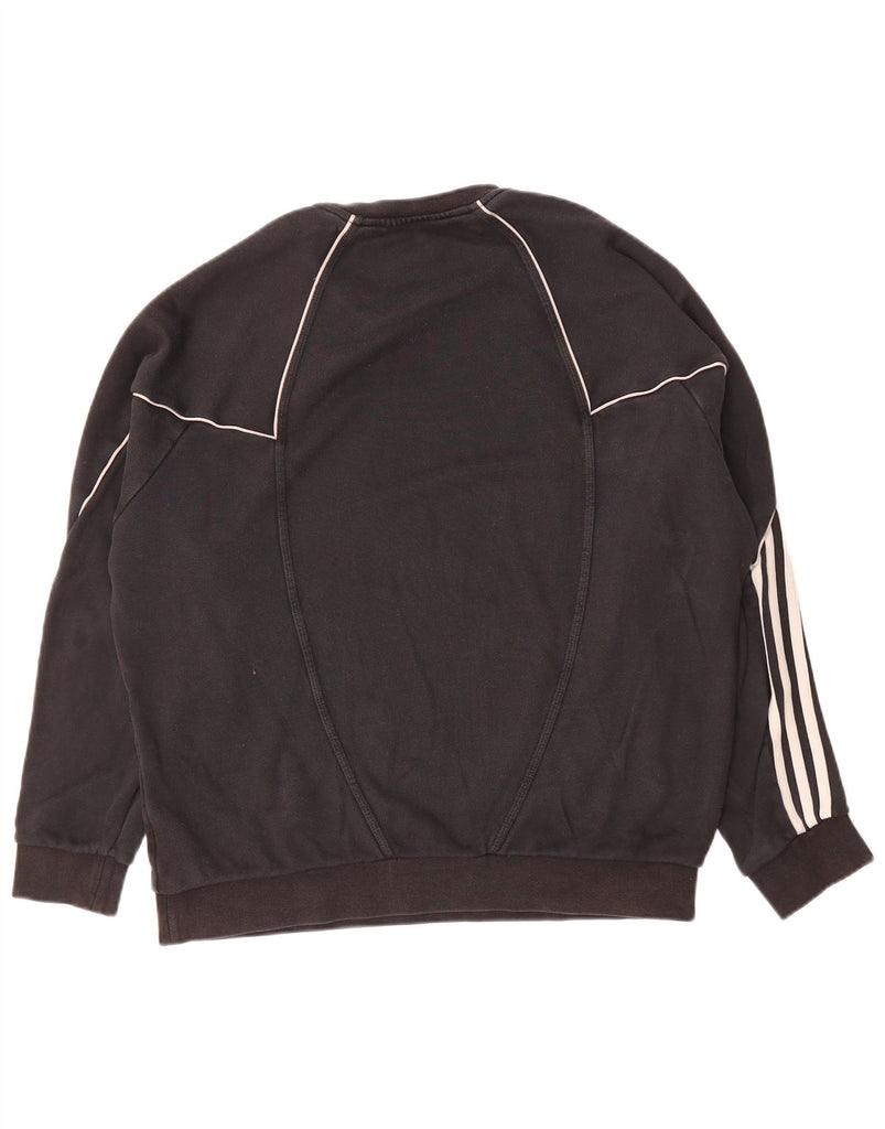 - AI Description: This Adidas mens sweatshirt jumper is crafted from a comfortable black knit fabric. It features a classic round neck and long sleeves. The pullover style ensures ease of wear. A regular fit offers comfortable movement. A prominent graphic logo provides a distinctive accent. This design combines stretch and comfort for everyday wear, perfect for a sports style.
