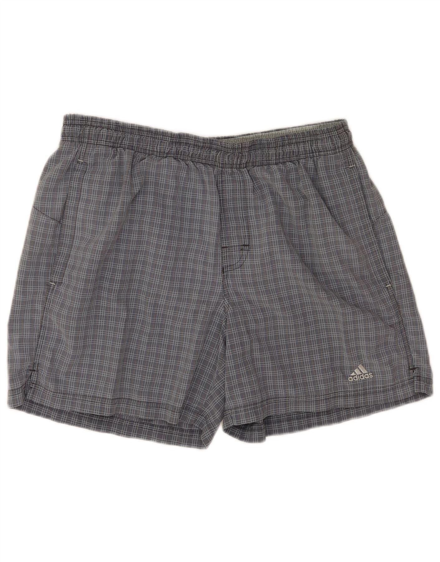 Adidas Short de bain pour homme en nylon à carreaux gris Large
