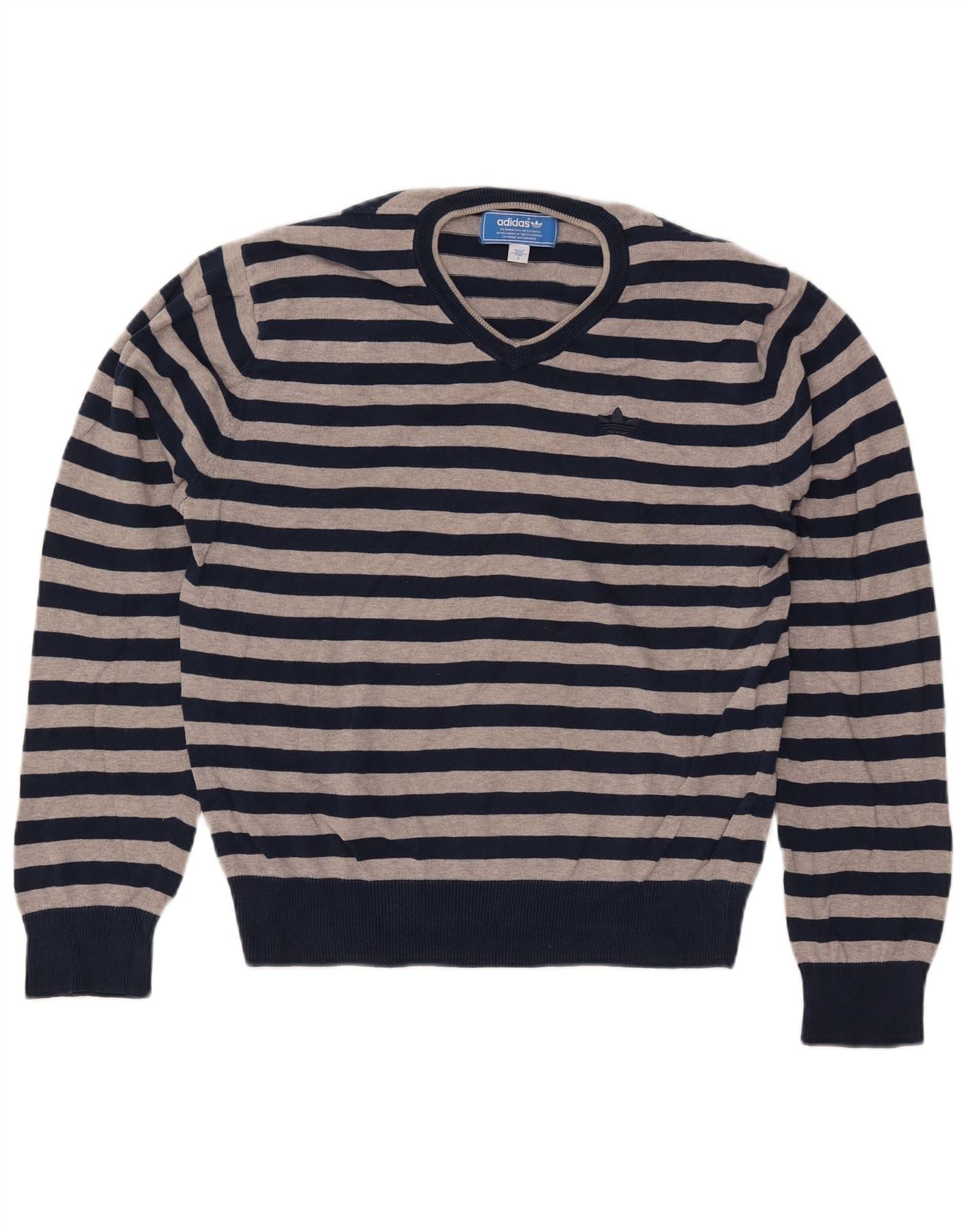 ADIDAS Pull à col en V pour homme Petit coton rayé bleu marine