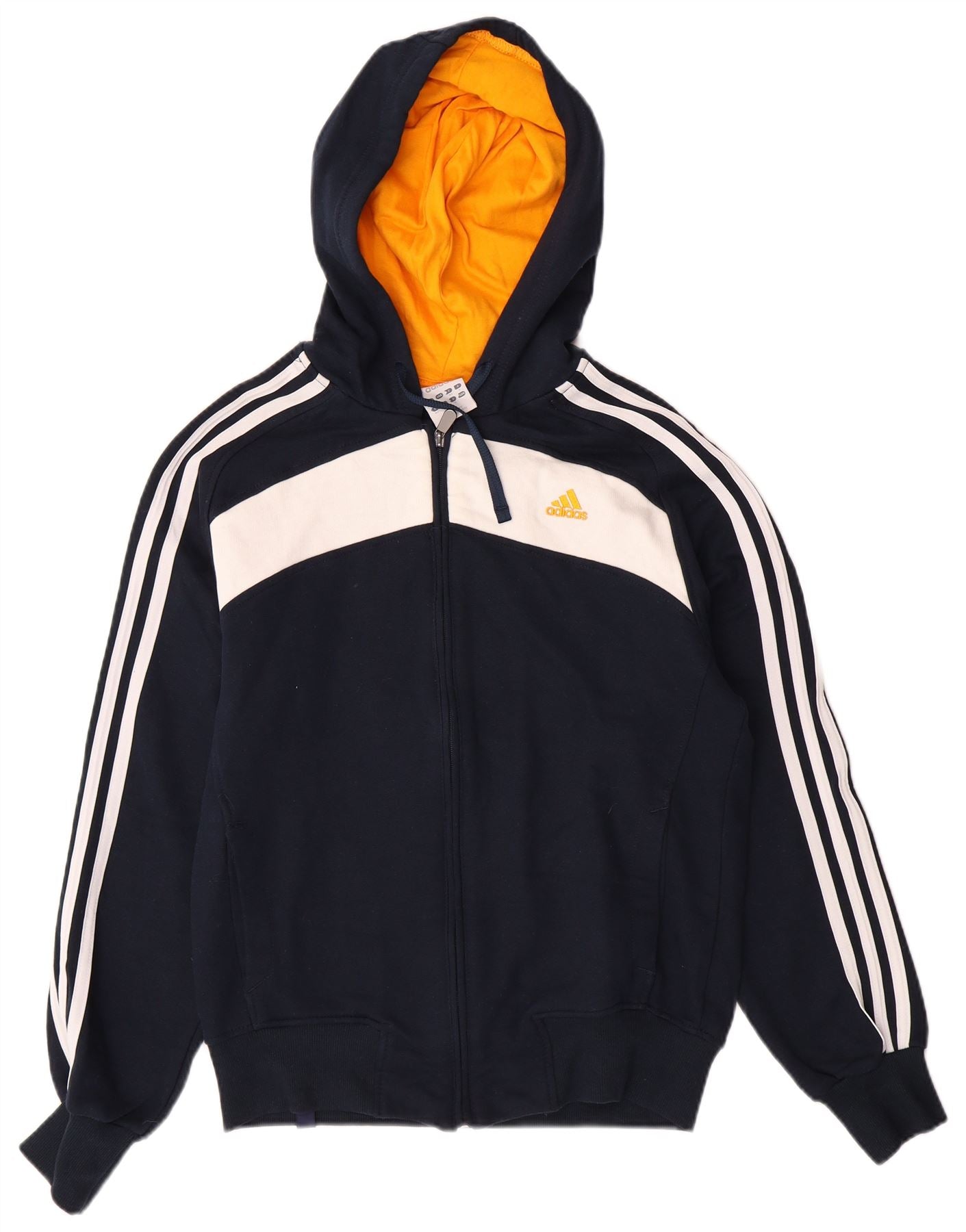 ADIDAS Pull à capuche zippé pour homme UK 34/36 Petit coton colorblock bleu marine