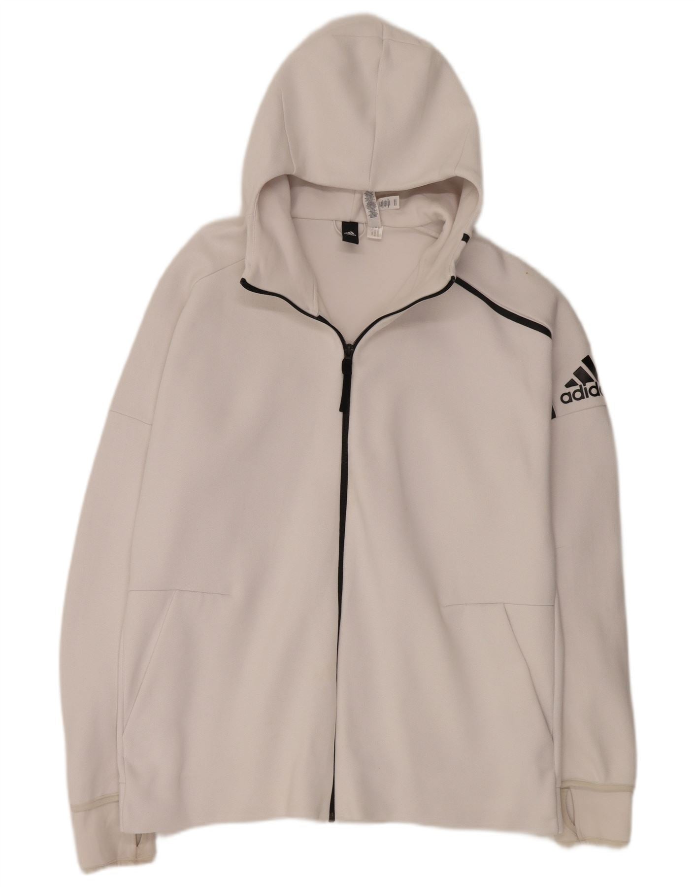 Adidas Pull à capuche zippé pour homme XL en coton blanc