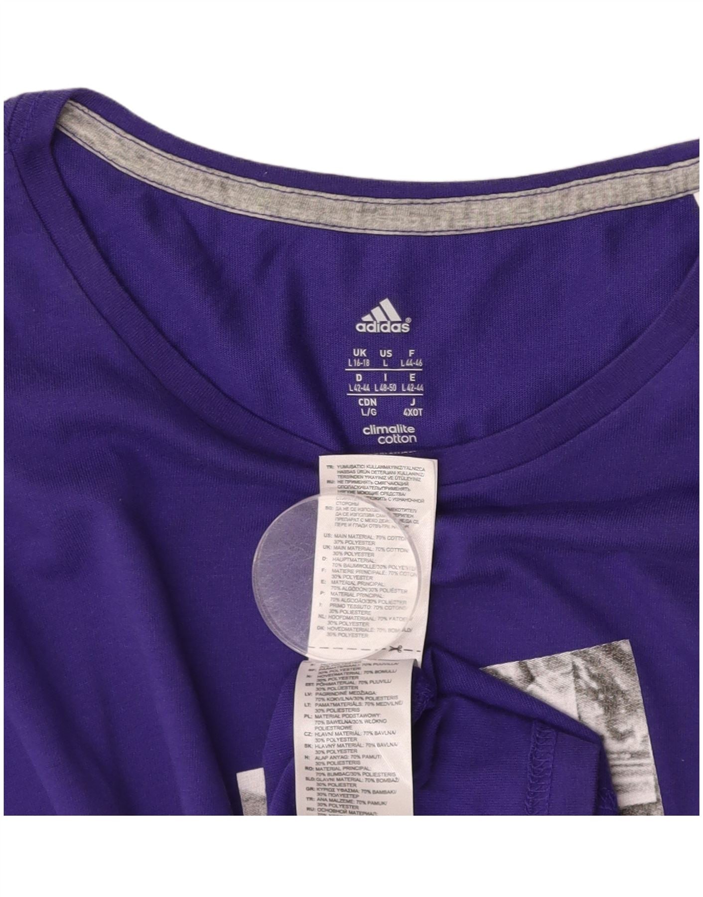 Home > Adidas > aux femmes > Hauts > ADIDAS Femmes Climalite Graphic T-Shirt Top UK 16/18 Grand Violet Coton
