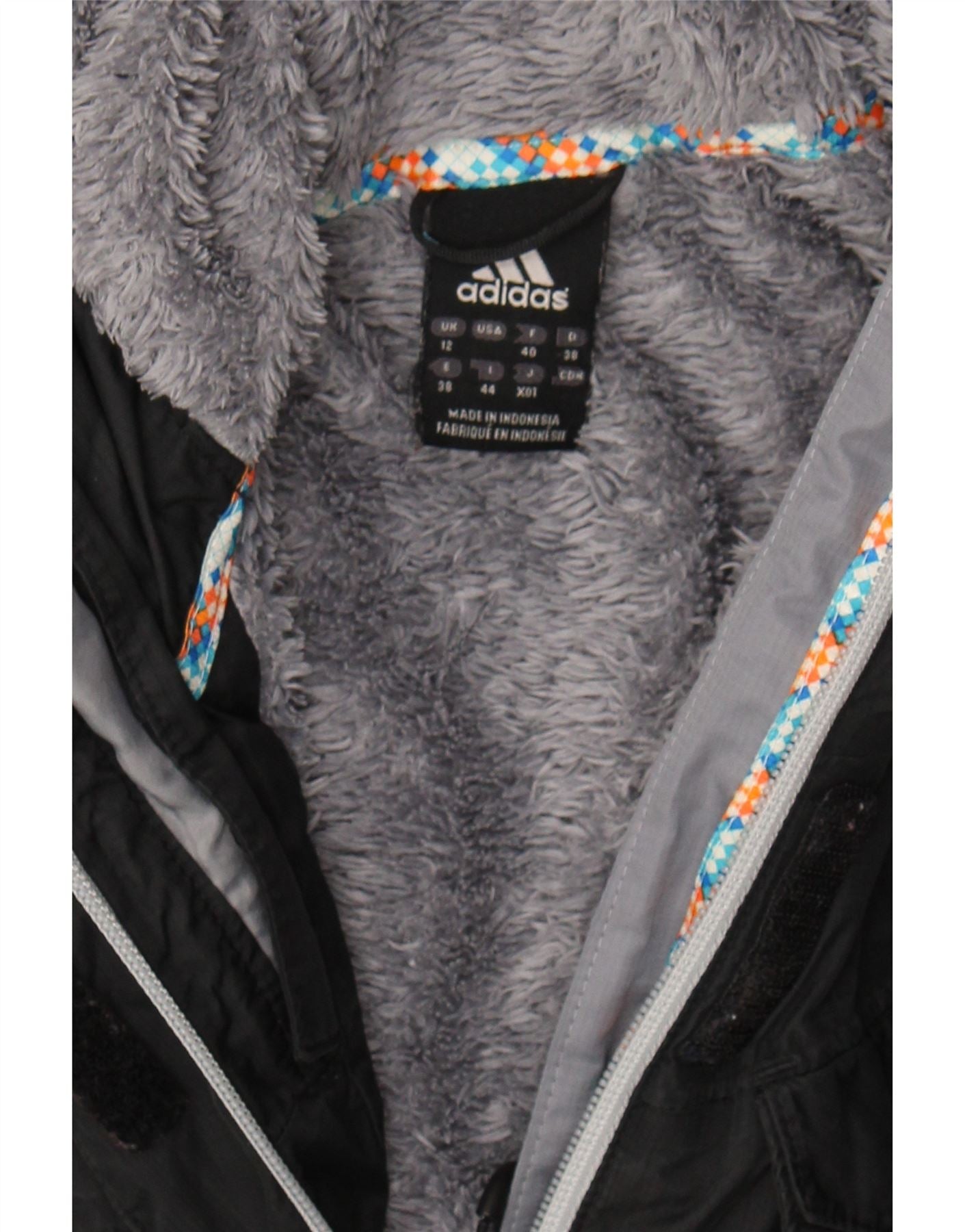 ADIDAS Womens Climalite Hooded Windbreaker Coat UK 12 Medium Black Nylon