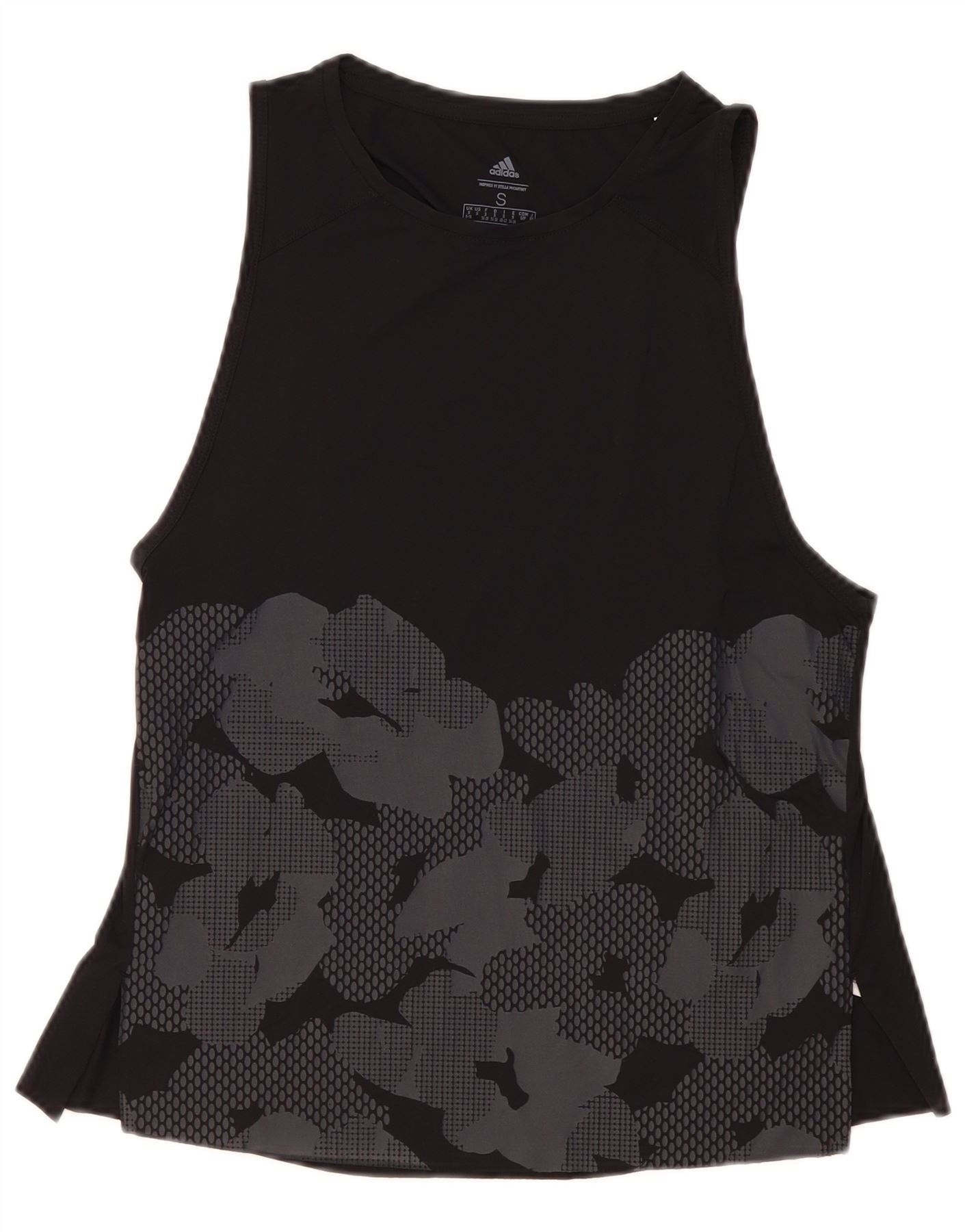 ADIDAS Femmes Climalite Débardeur UK 8/10 Petit Noir Camouflage Nylon