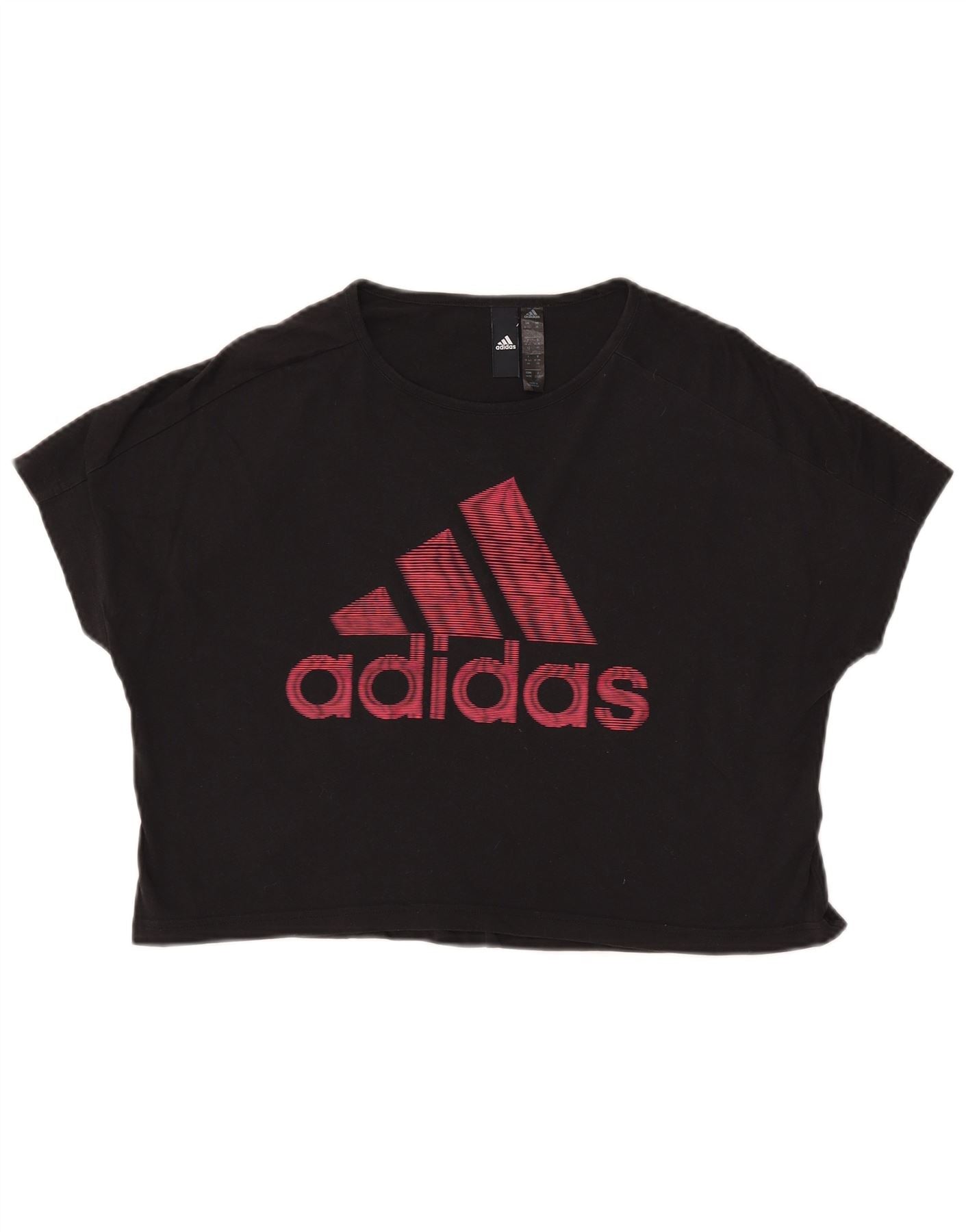 ADIDAS T-shirt court graphique pour femme UK 12/14 Coton noir moyen