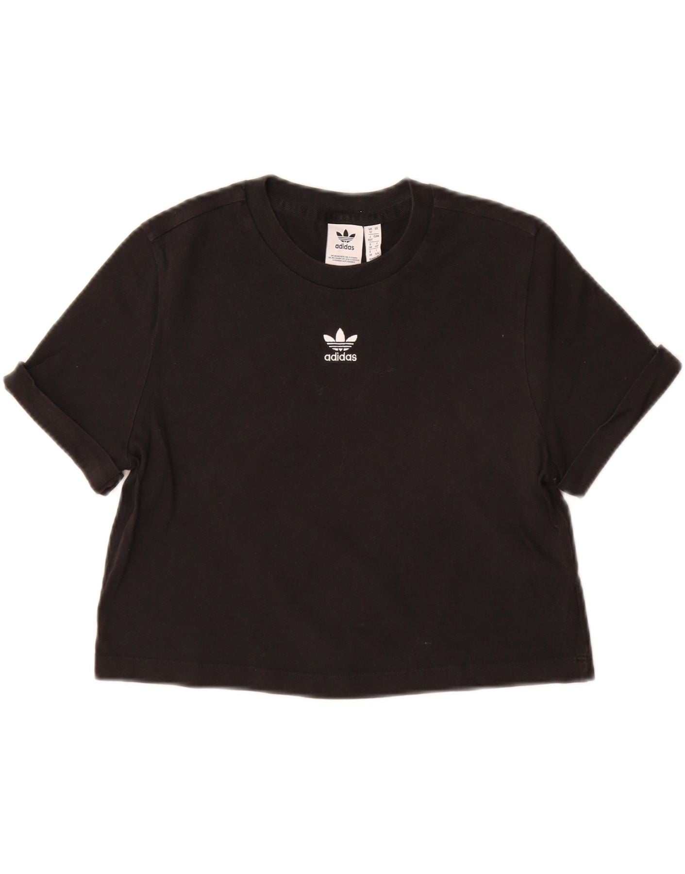 ADIDAS T-shirt court pour femme UK 12 en coton noir moyen