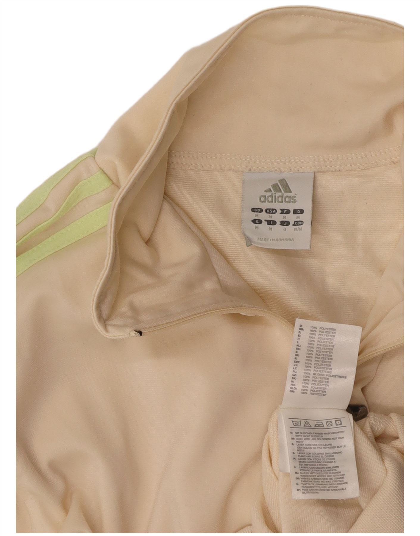 ADIDAS Womens Crop Tracksuit Top Jacket UK 14 Medium Off White Polyester