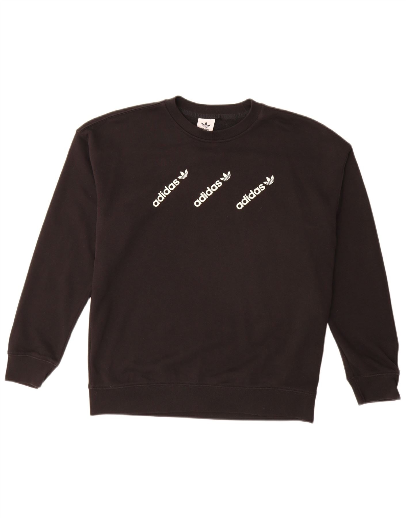 ADIDAS Sweat-shirt graphique pour femme UK 14 Grand coton noir