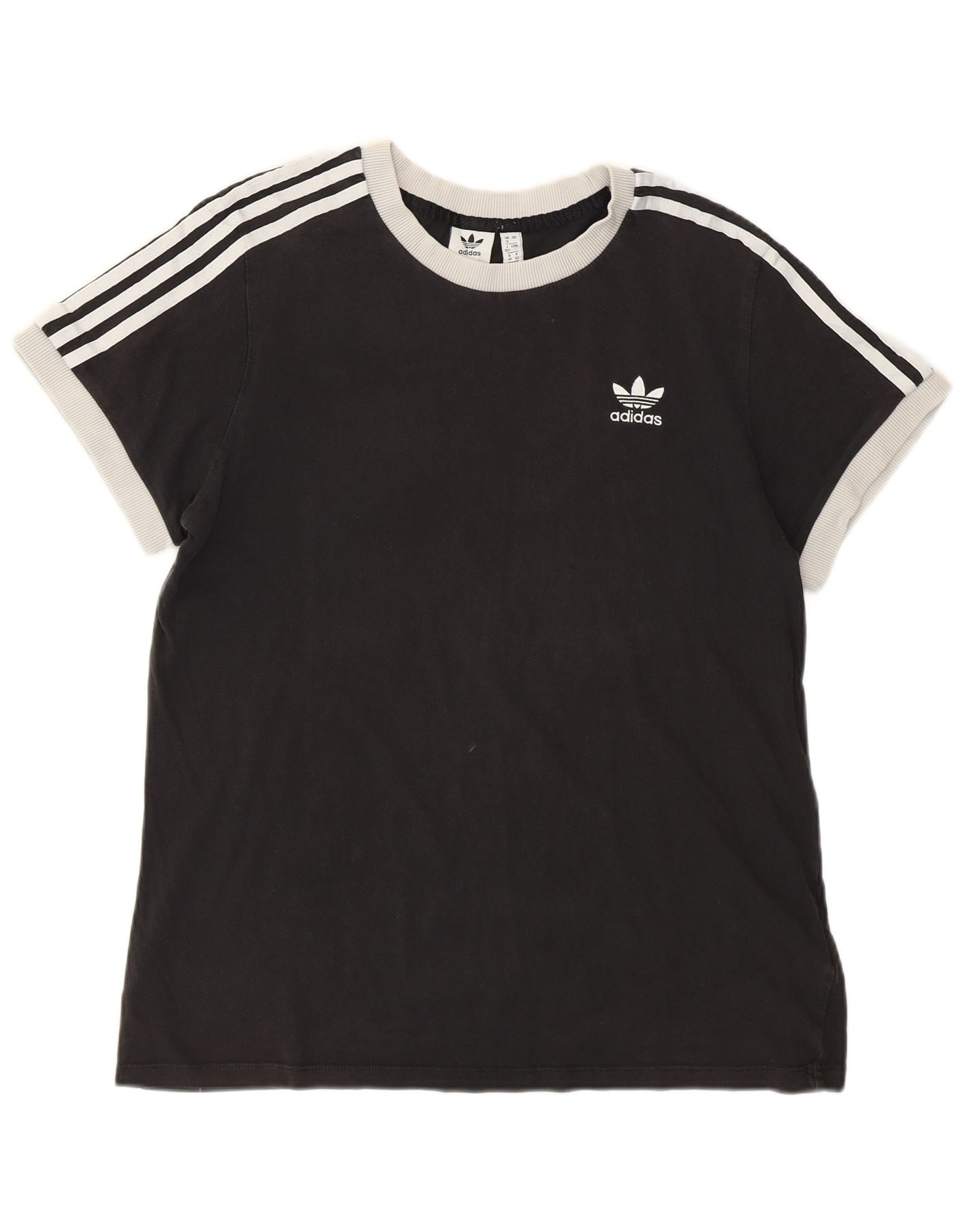 ADIDAS T-shirt graphique pour femme UK 12 en coton noir moyen