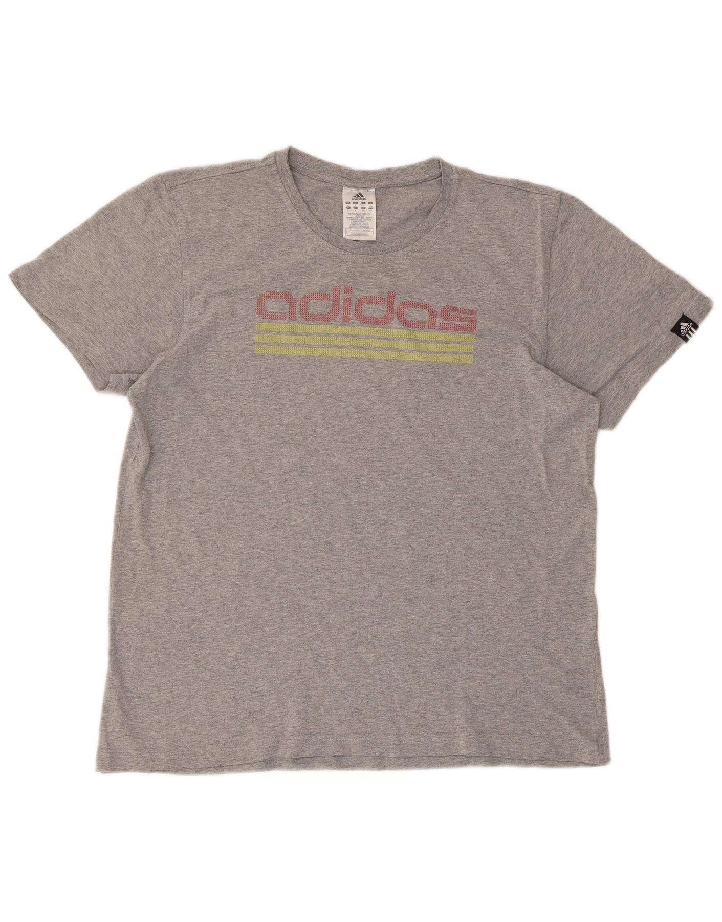 ADIDAS T-shirt graphique pour femme UK 16 Large Gris Coton
