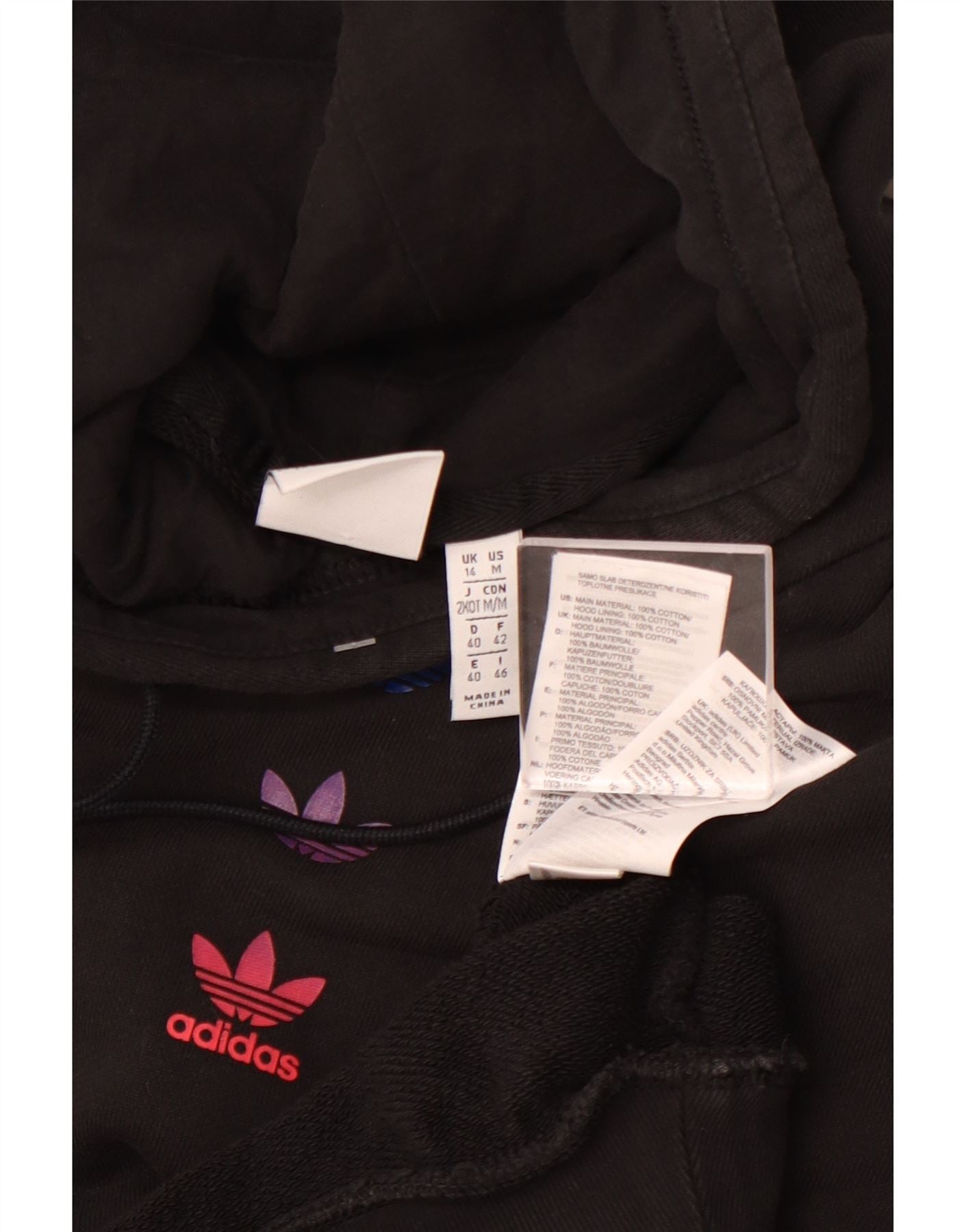 ADIDAS Pull à capuche graphique coupe ample pour femme UK 14 Grand coton noir