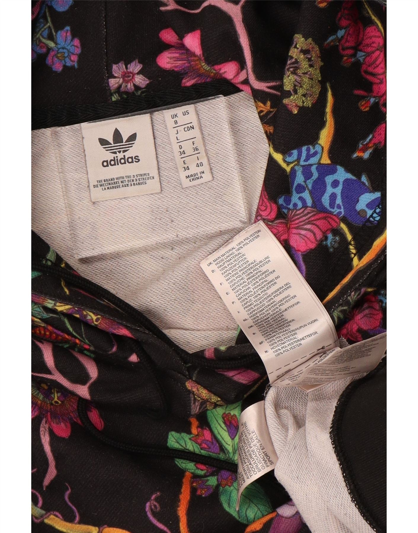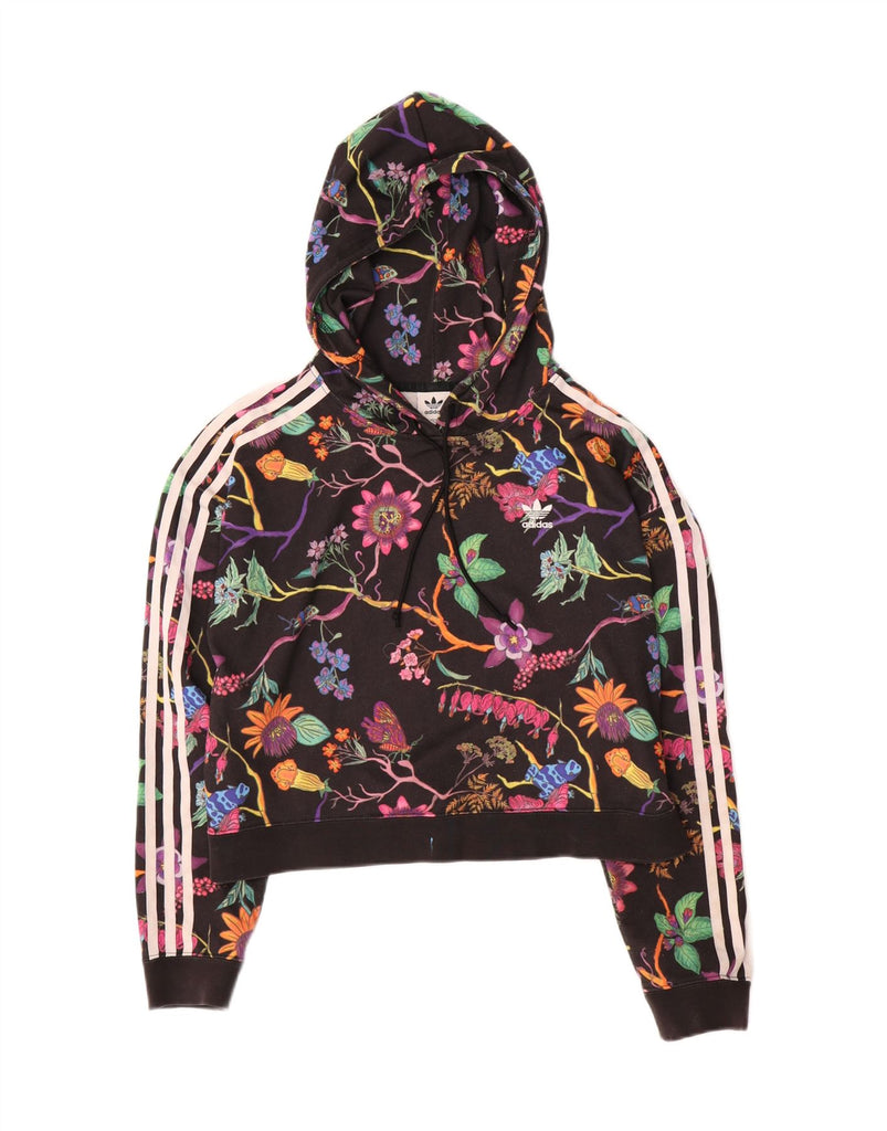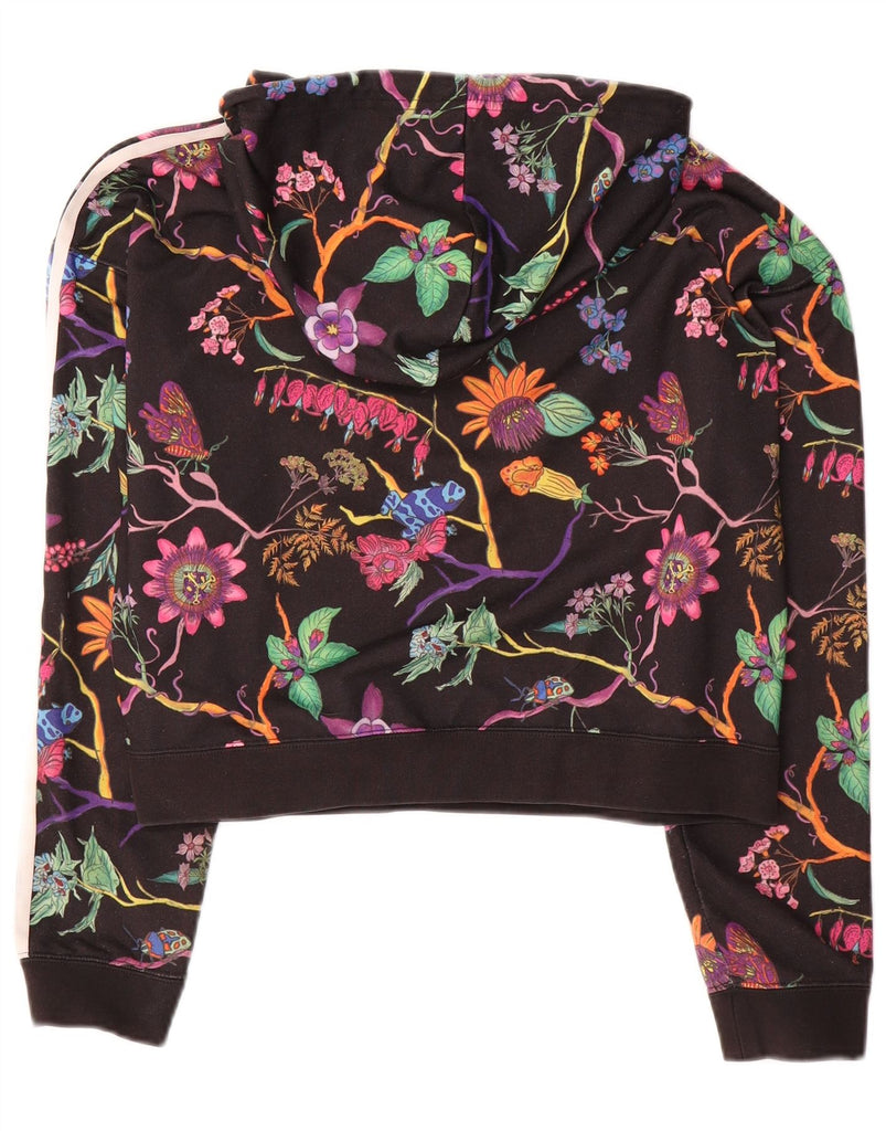 ADIDAS Pull à capuche court surdimensionné pour femme UK 8 Petit Noir Floral
