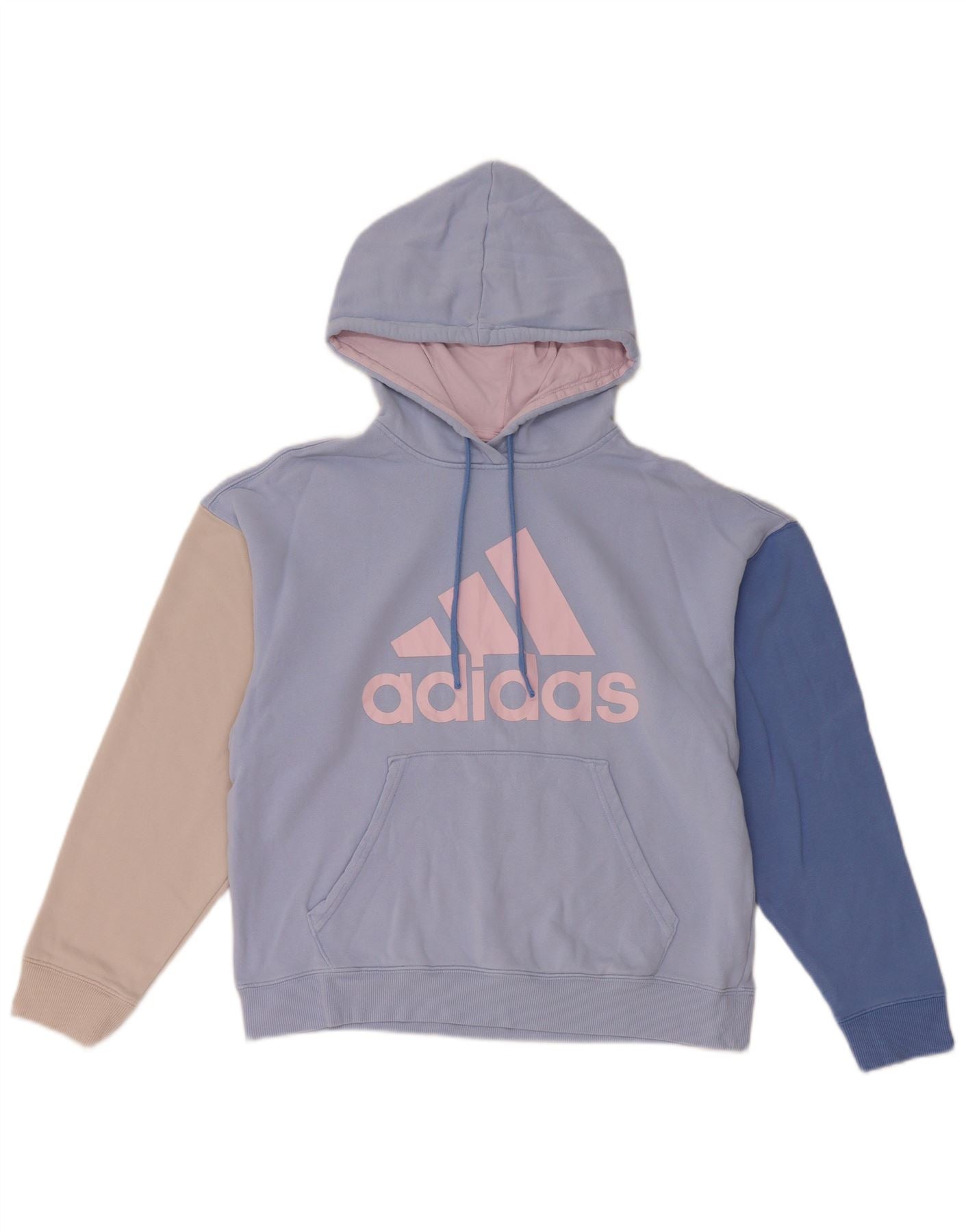 ADIDAS Pull à capuche graphique surdimensionné pour femme UK 4/6 XS Bleu Colorblock