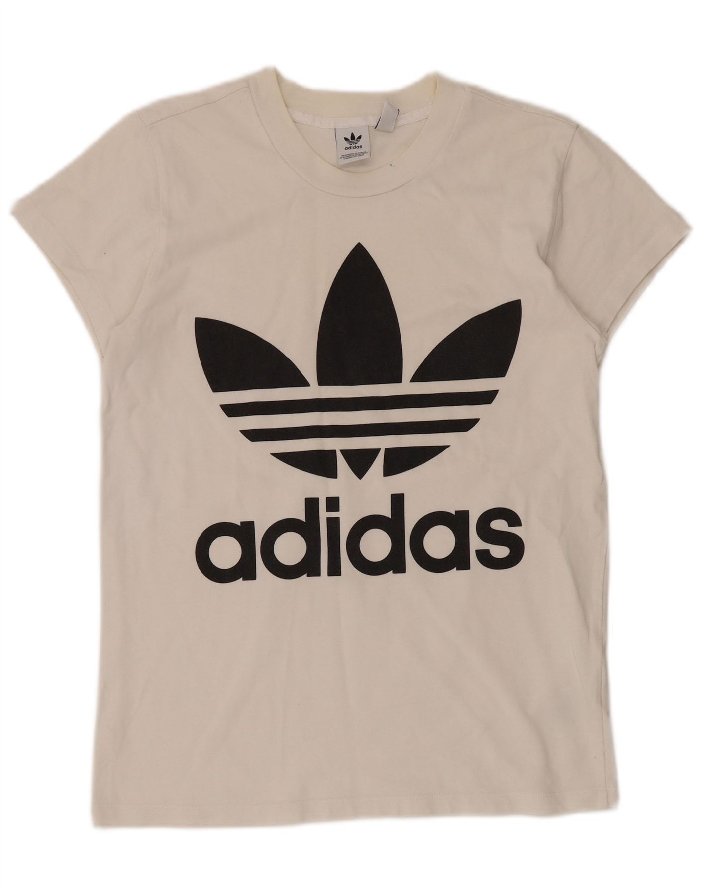 ADIDAS T-shirt graphique surdimensionné pour femme UK 2 2XS Coton blanc