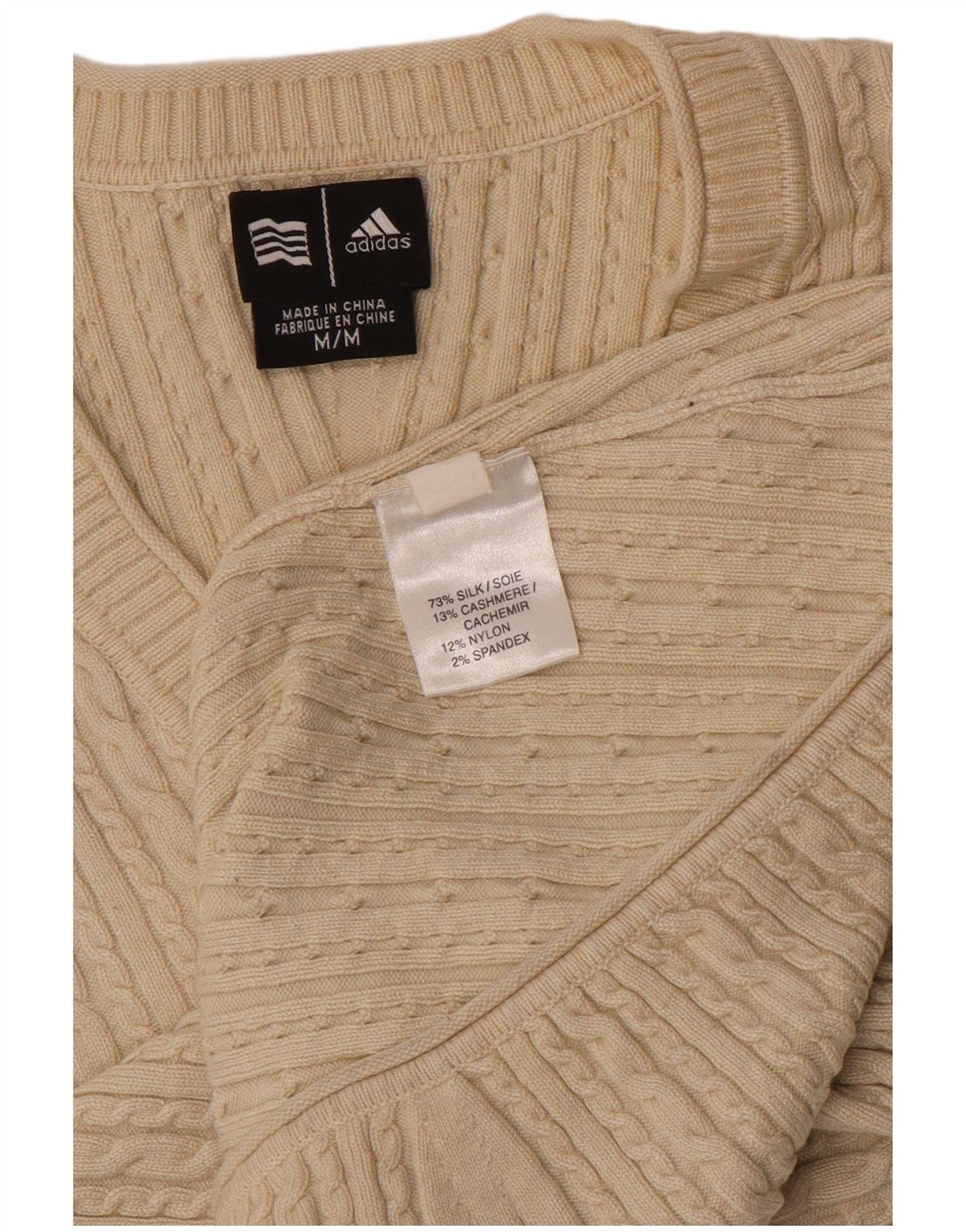 ADIDAS Pull col en V pour femme UK 12 Soie beige moyen