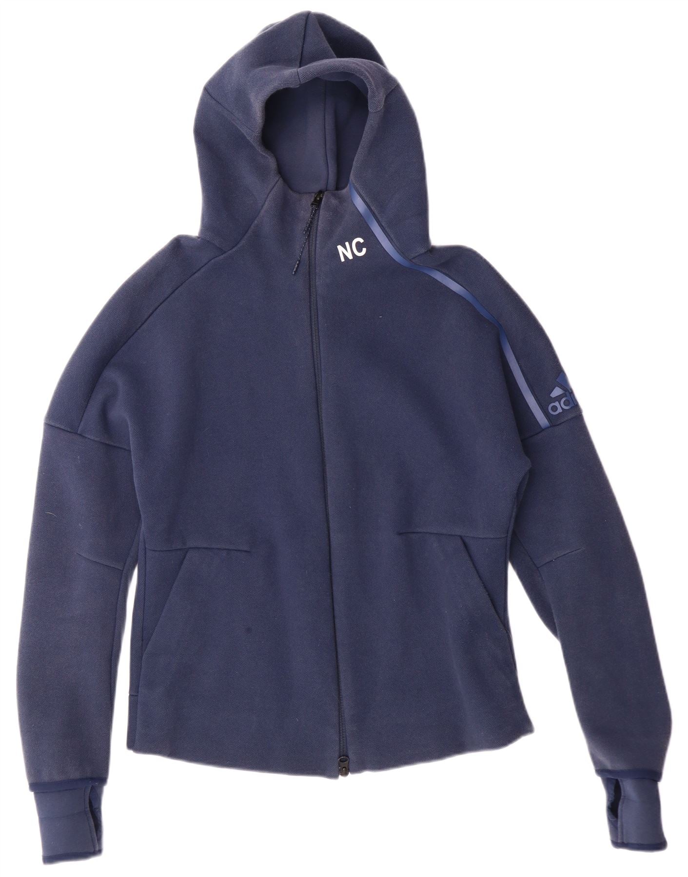 ADIDAS Pull à capuche zippé pour femme UK 12/14 Bleu marine moyen Coton