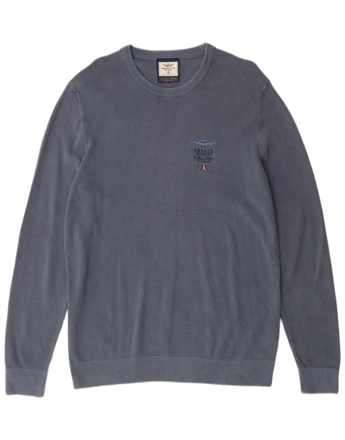AERONAUTICA MILITARE Pull col rond homme XL coton bleu