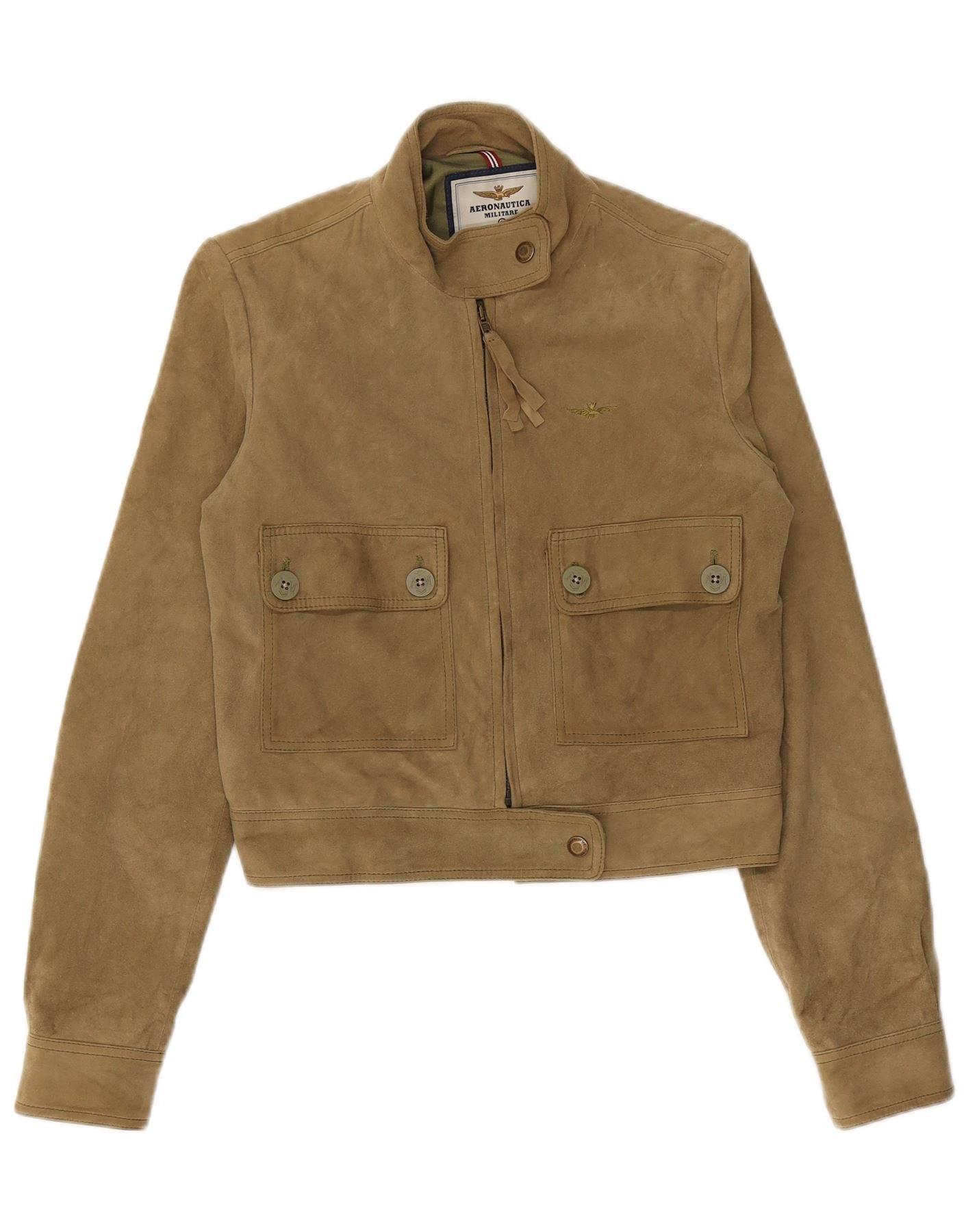 Aeronautica Militare Veste courte en daim pour femme IT 42 Cuir kaki moyen