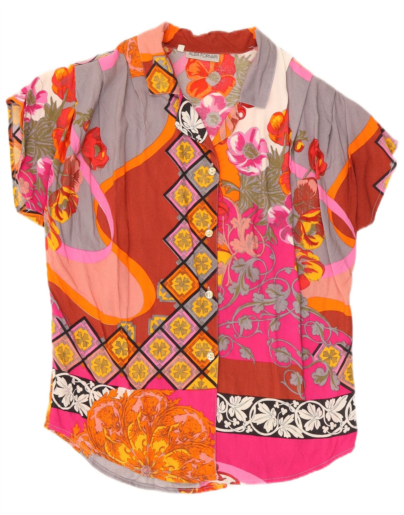 ALBA FORNARI Chemise surdimensionnée pour femme UK 10 Petit patchwork multicolore