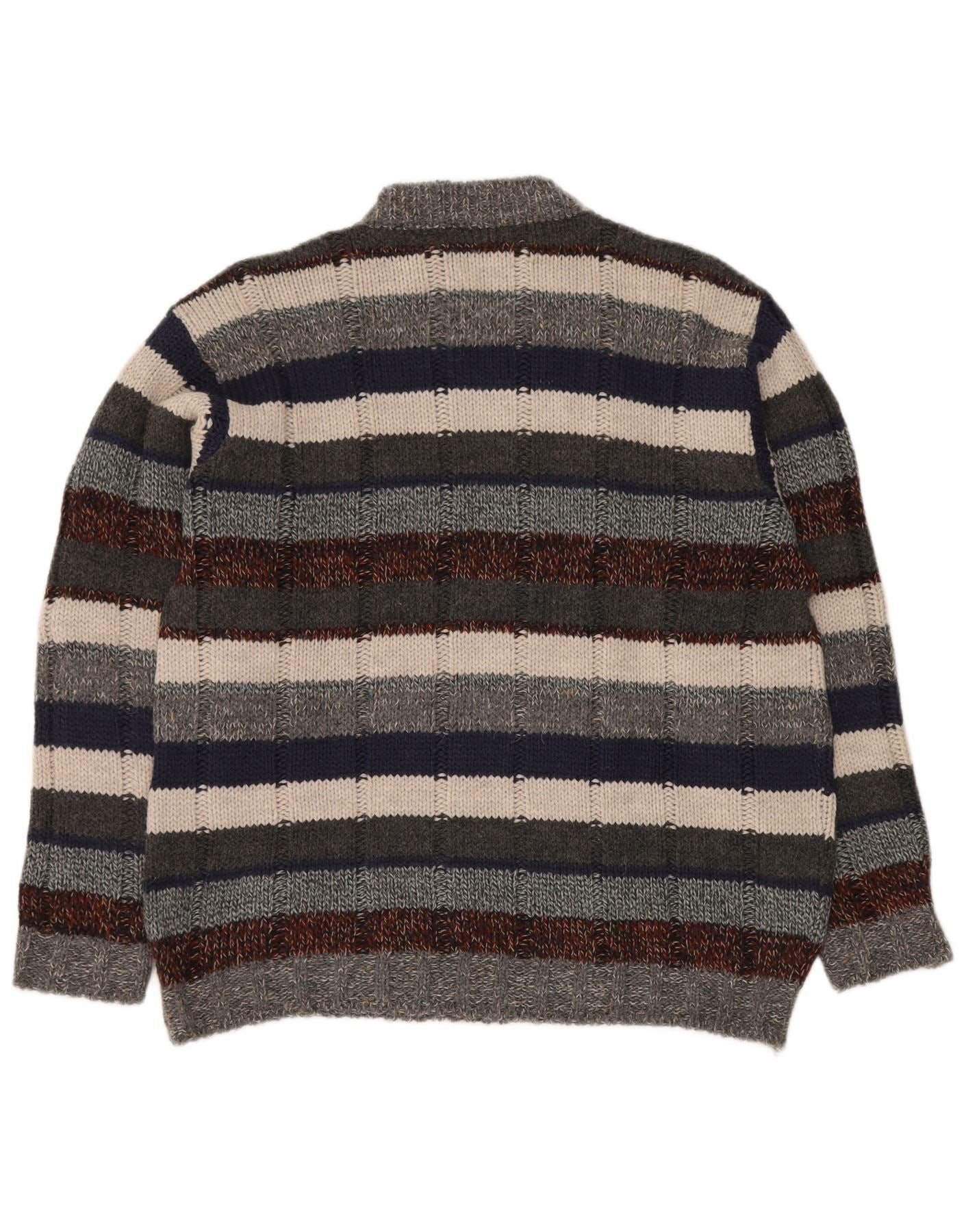 ALCATRAZ Pull à col rond pour homme en laine à rayures multicolores