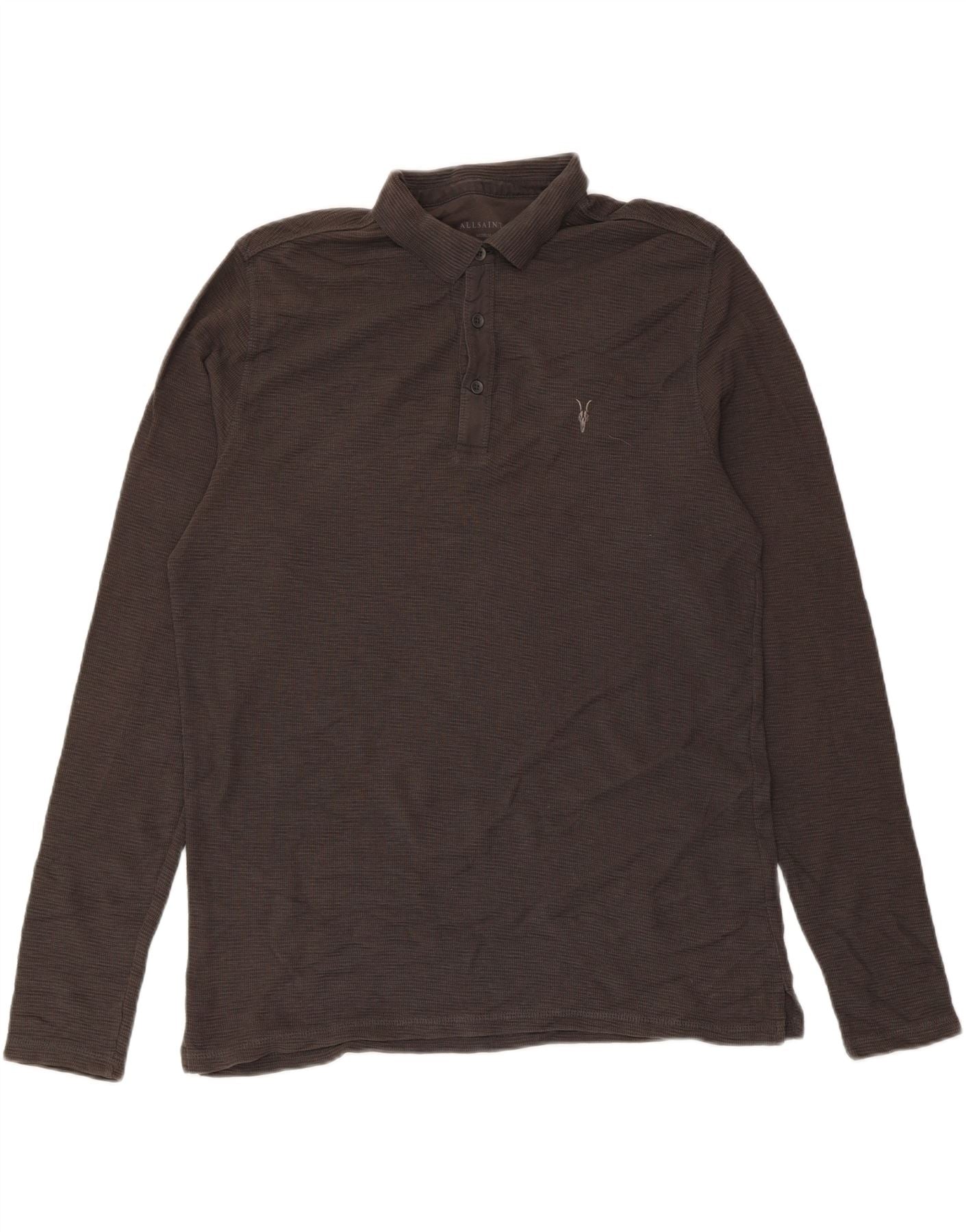 All Saints Polo à Manches Longues Homme Gris Moyen Coton