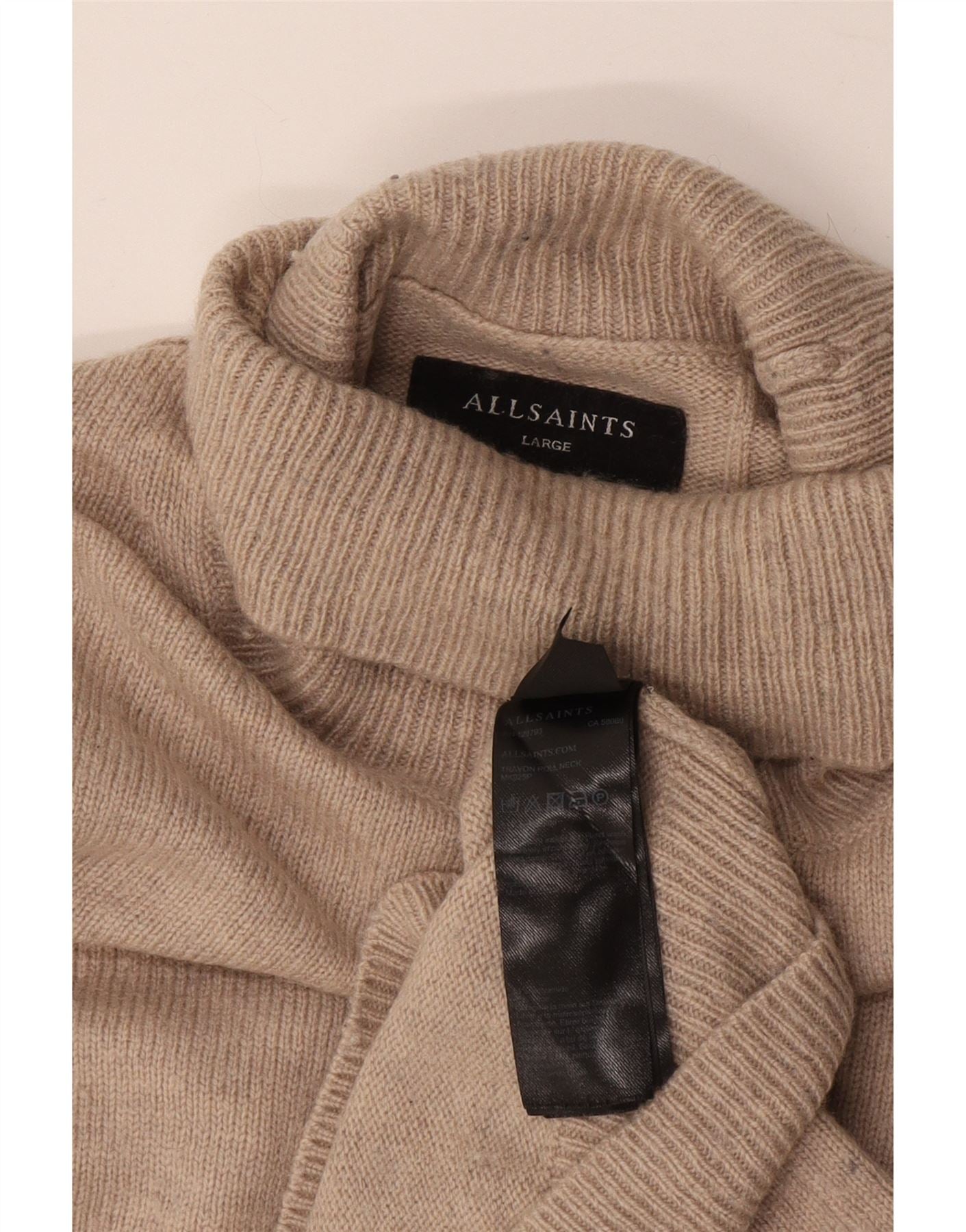 ALL SAINTS Pull Col Roulé Homme Large Laine Beige