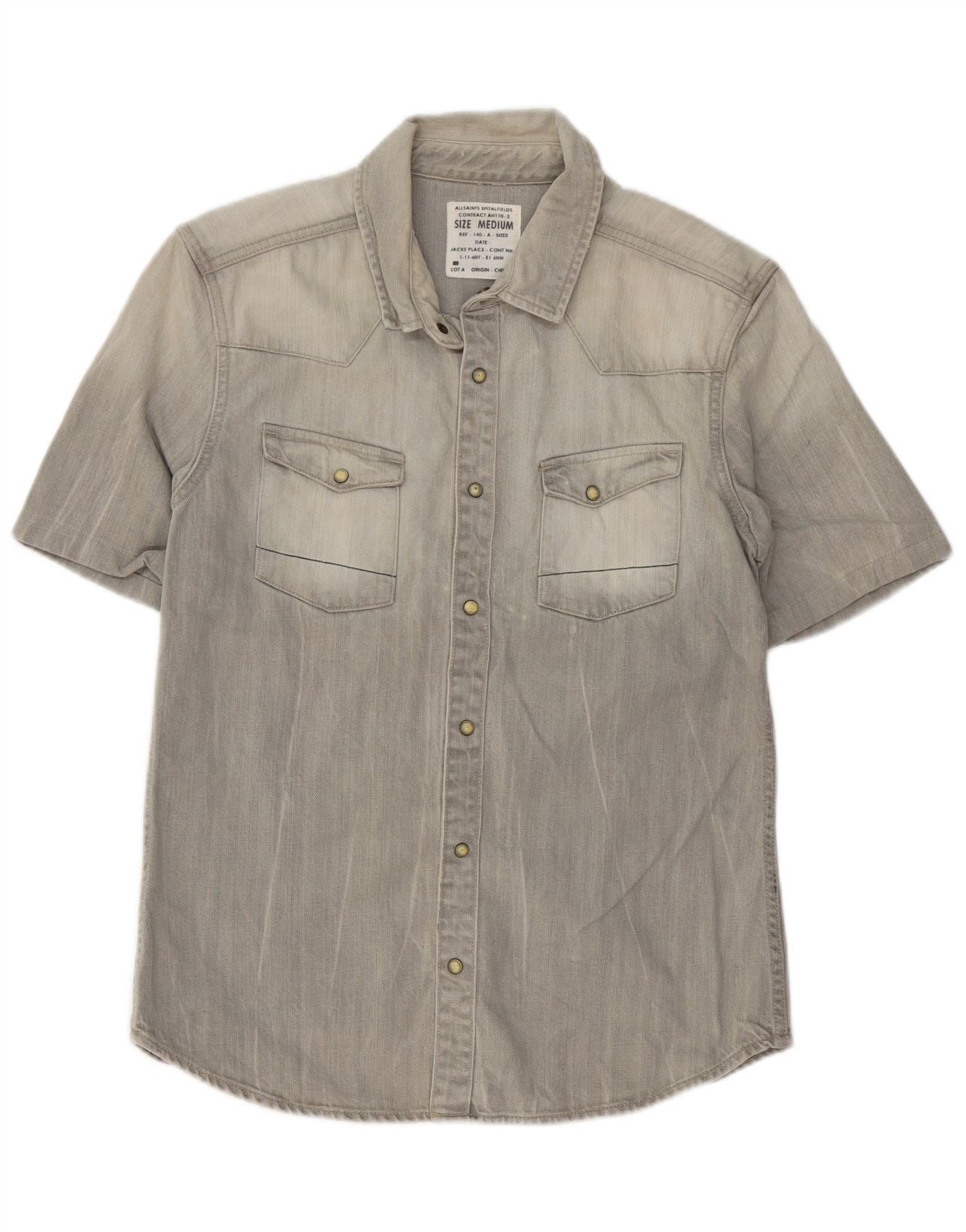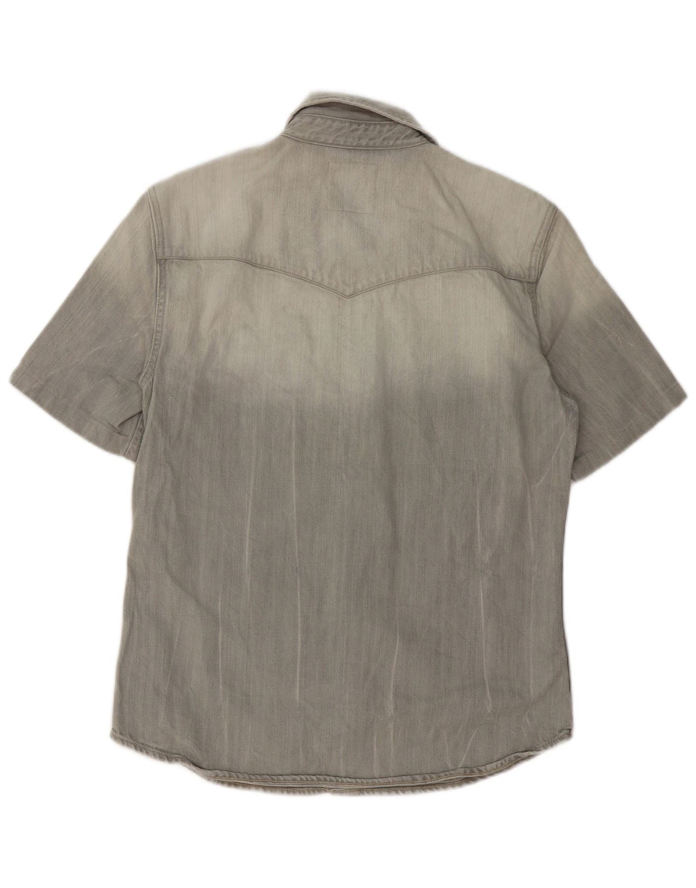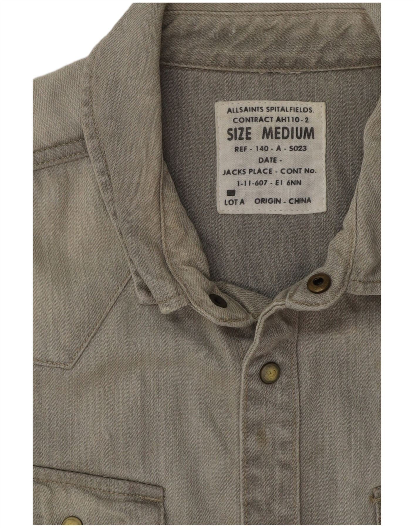 ALL SAINTS Chemise en Jean à Manches Courtes Homme Gris Moyen Coton