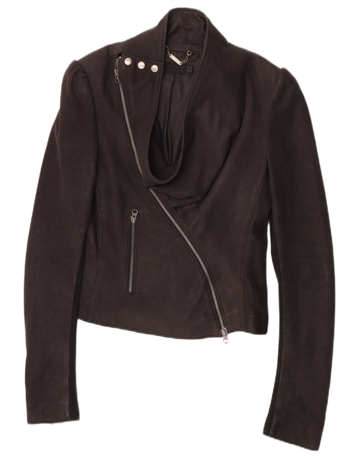 All Saints Veste Racer en cuir pour femme UK 12 Cuir noir moyen