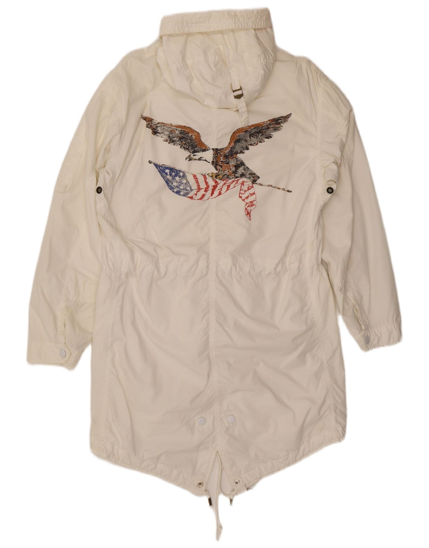 AMERICAN LEGEND Mens Graphic Hooded Parka Jacket UK 38 Medium White Cotton