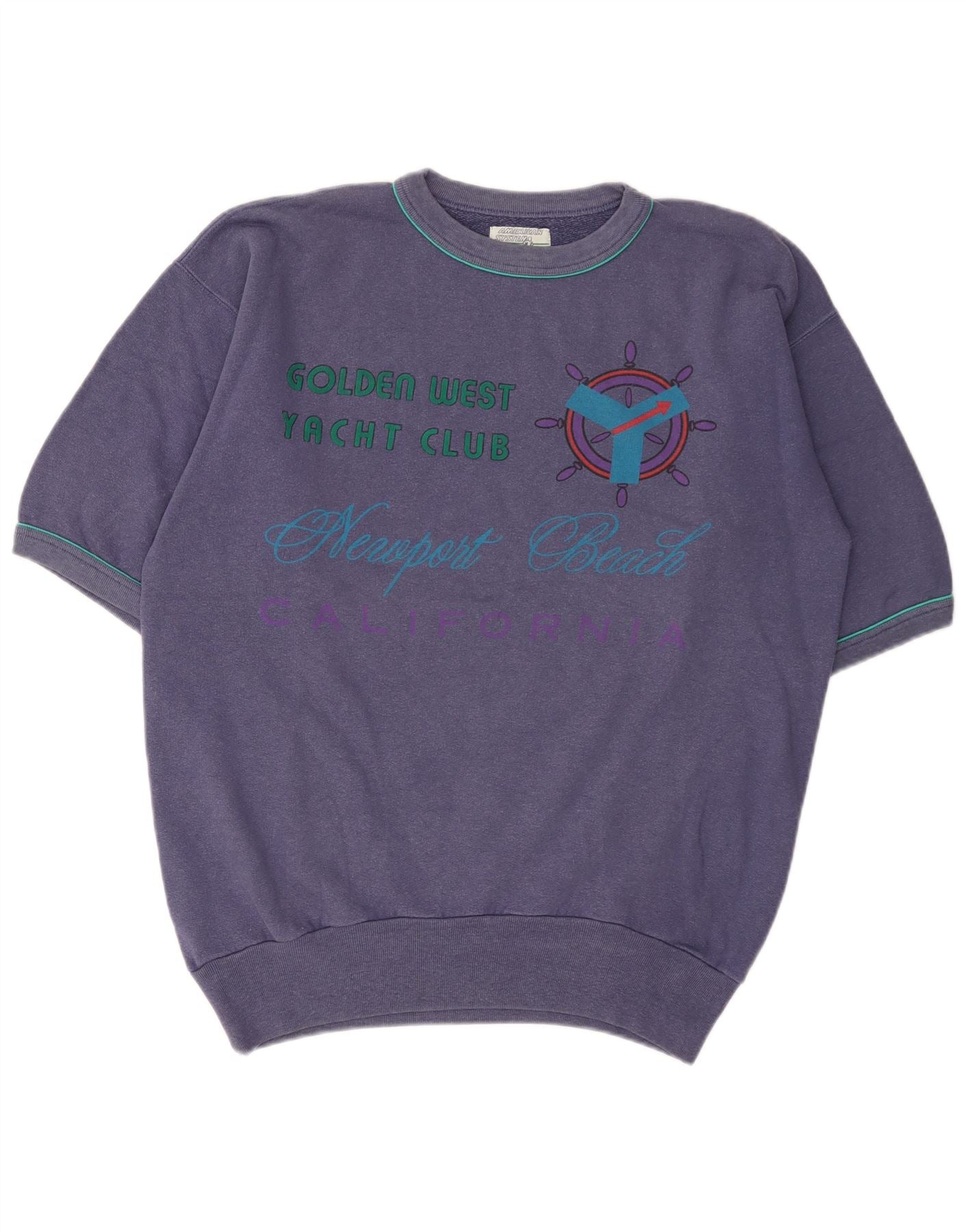 - Description de l'IA : Ce pull sweat-shirt pour homme American System est fabriqué à partir d'un tissu en jersey de coton mélangé acrylique doux. Il présente une riche teinte violette avec un graphique proéminent du Golden West Yacht Club sur le devant. Le col rond et les manches courtes offrent une silhouette décontractée. Les manches et l'ourlet à revers assurent une finition soignée. Ce style de pull offre une coupe régulière confortable, parfaite pour un look nautique décontracté.