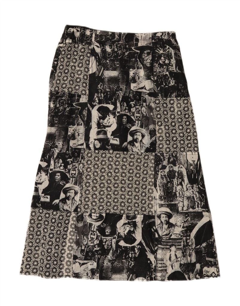 AMULETI Womens Graphic A-Line Skirt UK 14 Large W30 Black Patchwork Linen