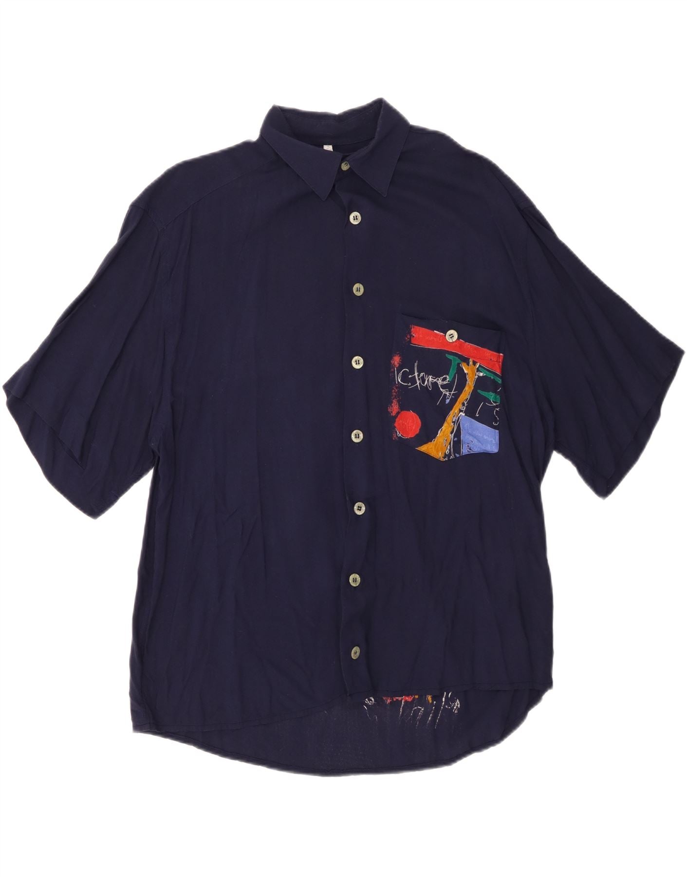 ANGELO LITRICO Chemise à motif abstrait pour homme UK 39/40 Bleu marine moyen