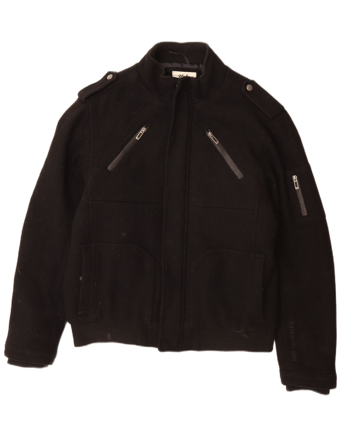 ANGELO LITRICO Veste Bomber Militaire Homme UK 42 XL Laine Noire