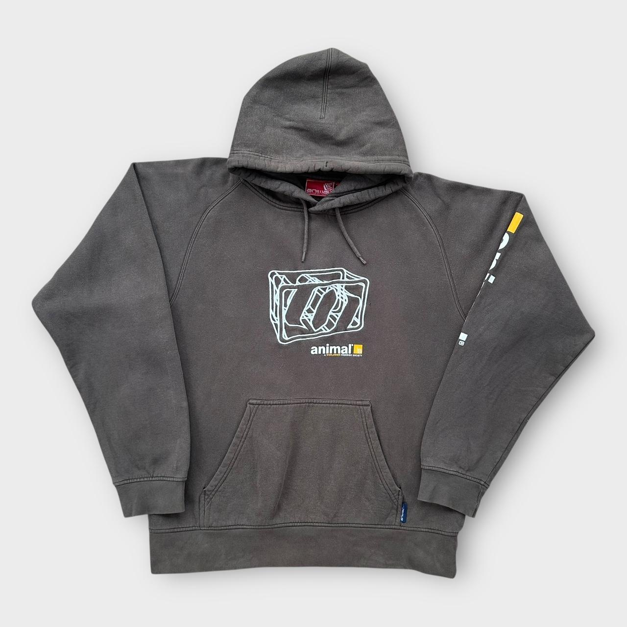 Début des années 2000 Y2K Animal surf wear sweat à capuche brodé en marron avec broderie sur la poitrine et imprimé sur le bras