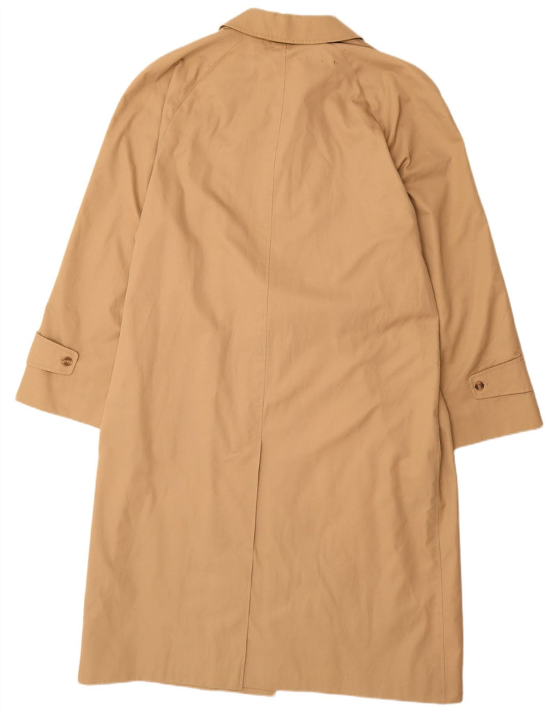 - AI Description: This Aquascutum mens trench coat is crafted from a beige woven fabric, offering a classic, refined texture. It features a collared neckline and long sleeves. The classic fit ensures a timeless silhouette. A subtle check pattern adds sophisticated visual interest. Button closures and button accents provide traditional detailing. This coat is water resistant, lined, and includes practical pockets, blending elegance with functionality.