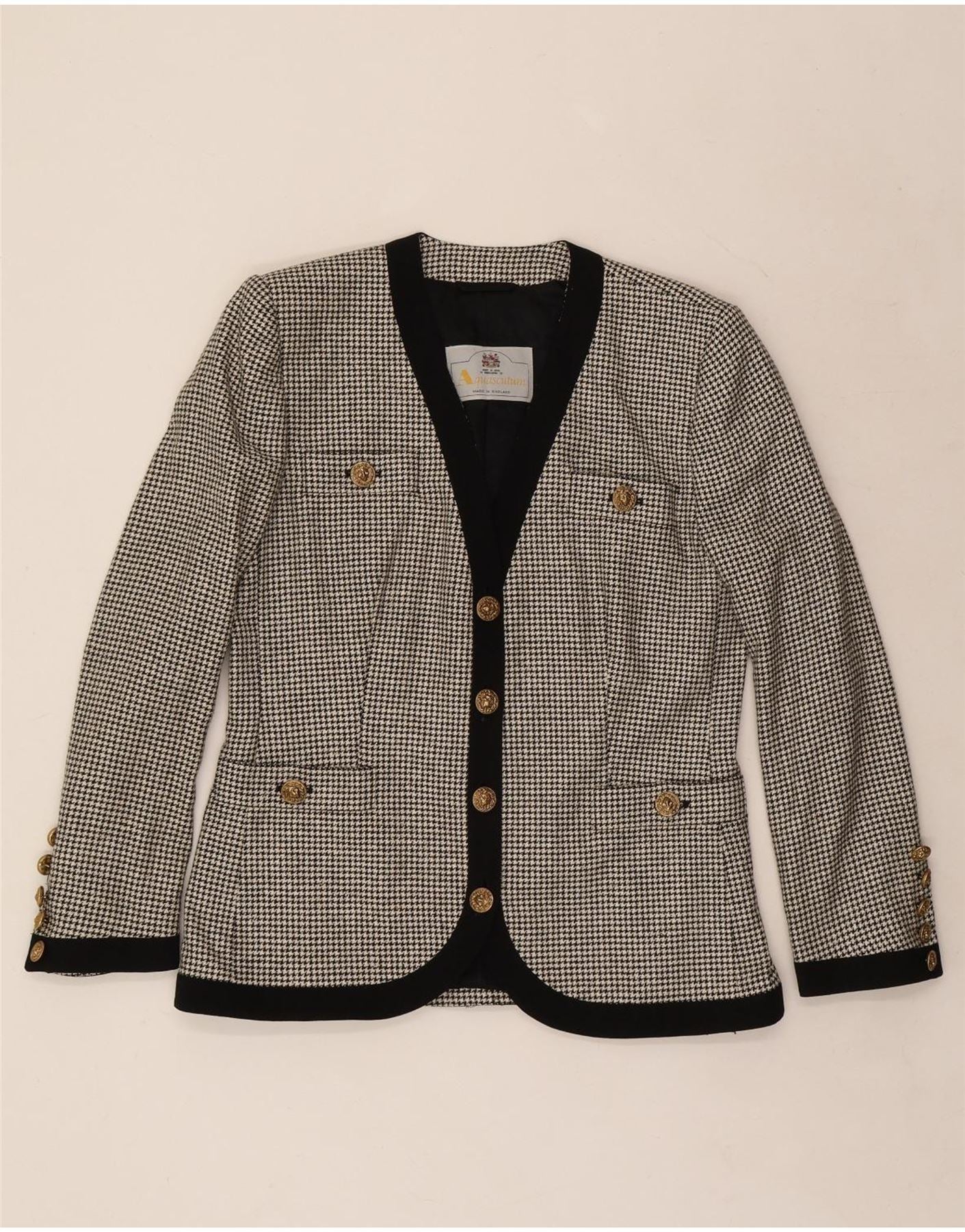 AQUASCUTUM Womens 4 Button Blazer Jacket UK 12 Medium Black Houndstooth