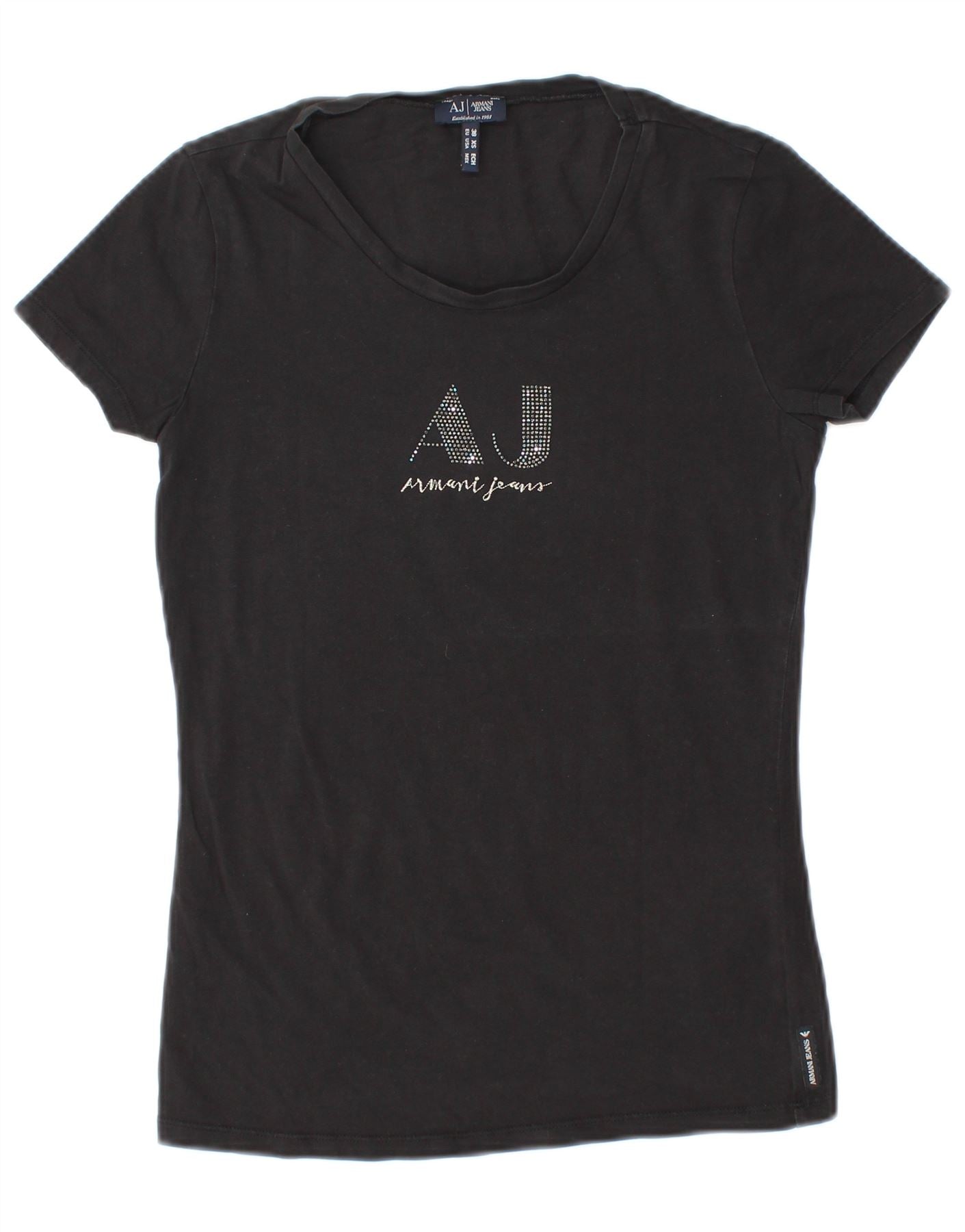 Armani Jeans T-Shirt Graphique Femme Top EU 38 Coton Noir Moyen