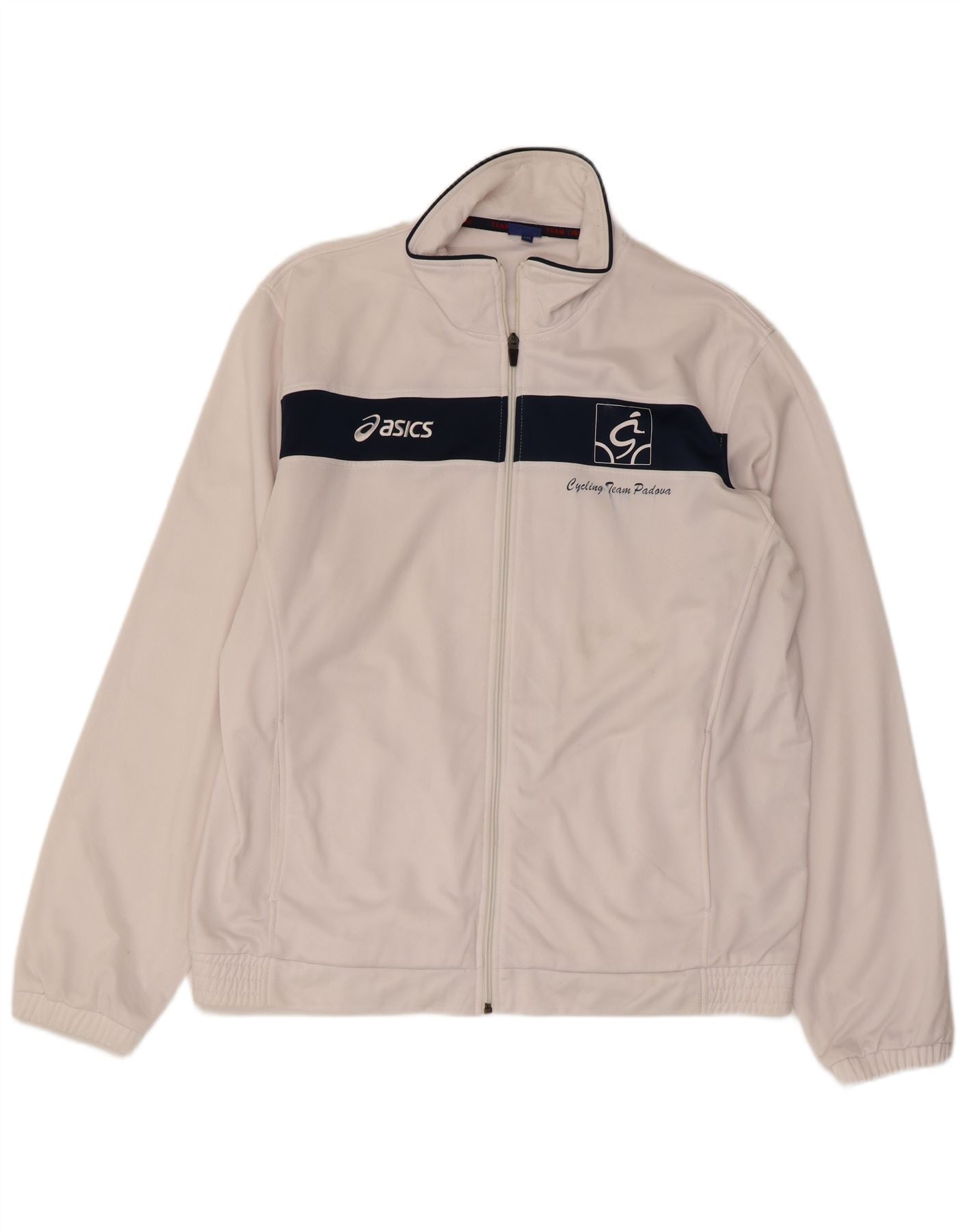 ASICS Mens Graphic Tracksuit Top Jacket 2XL White Colourblock Polyester