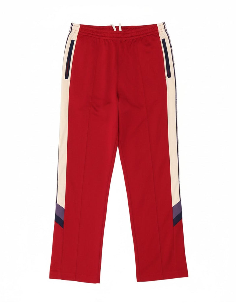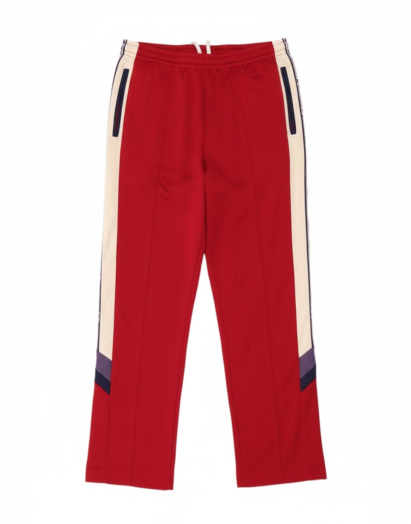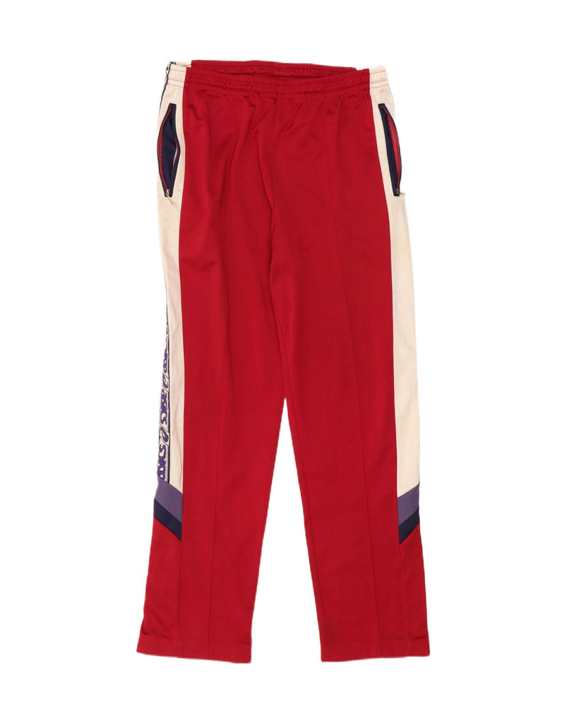 - AI Description: This Vintage mens tracksuit trousers come in a rich burgundy jersey fabric, offering exceptional comfort and a lightweight feel. The pull on design features an elasticated waist with a drawstring for an adjustable, secure fit. They boast a regular fit for easy movement, complete with practical pockets. A subtle logo accent adds a sporty, authentic touch to the design.