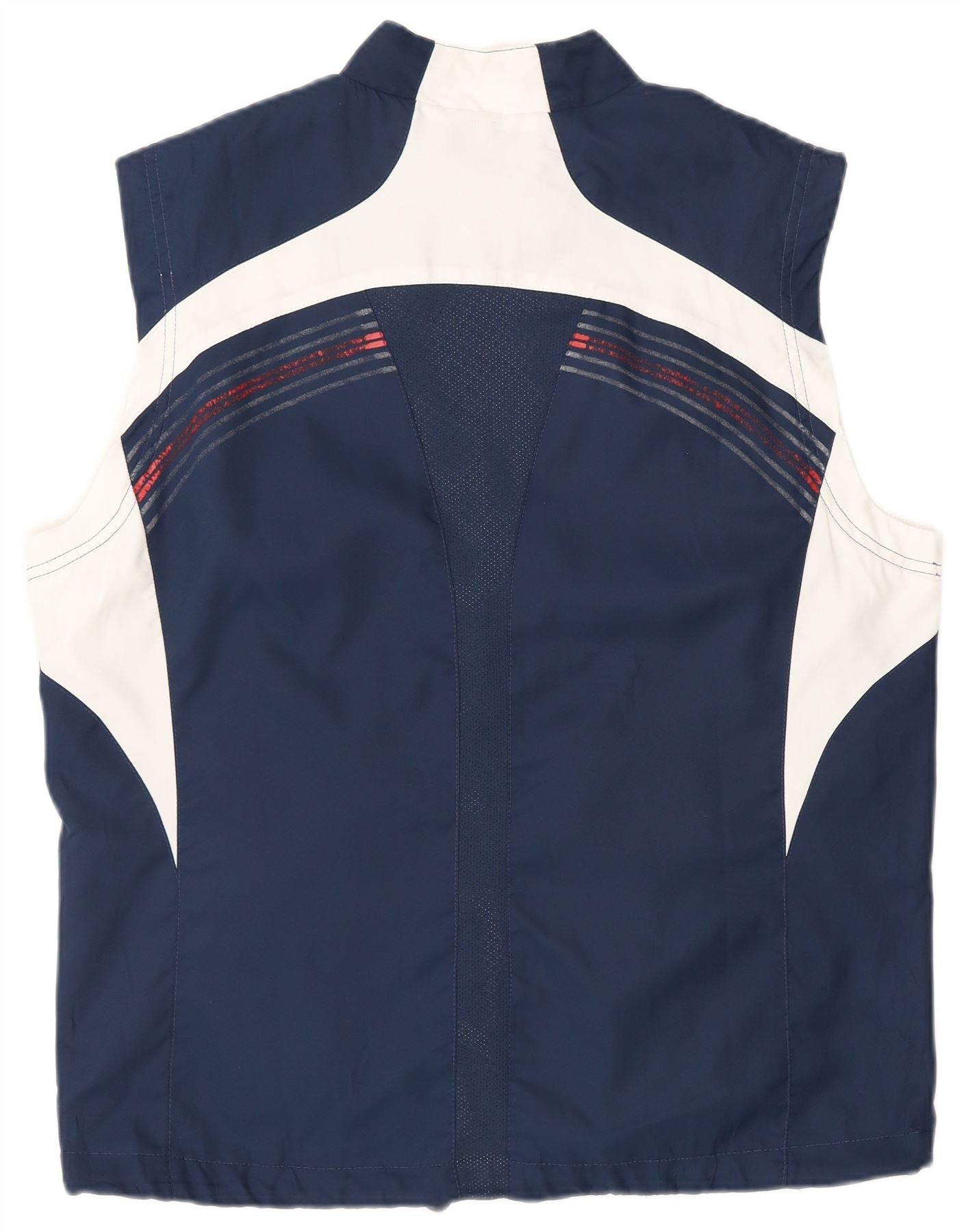 - Description de l'IA : Ce gilet Asics pour hommes est fabriqué à partir de polyester lisse, offrant une sensation légère et respirante. Il présente un col haut et une fermeture zippée complète pour un port pratique. La conception sans manches assure la liberté de mouvement. Un superbe motif color block bleu marine et blanc définit son esthétique sportive. Un logo Asics ajoute une touche signature. Il comprend des poches pratiques. La coupe régulière offre un port confortable, idéal pour la course ou d'autres sports.