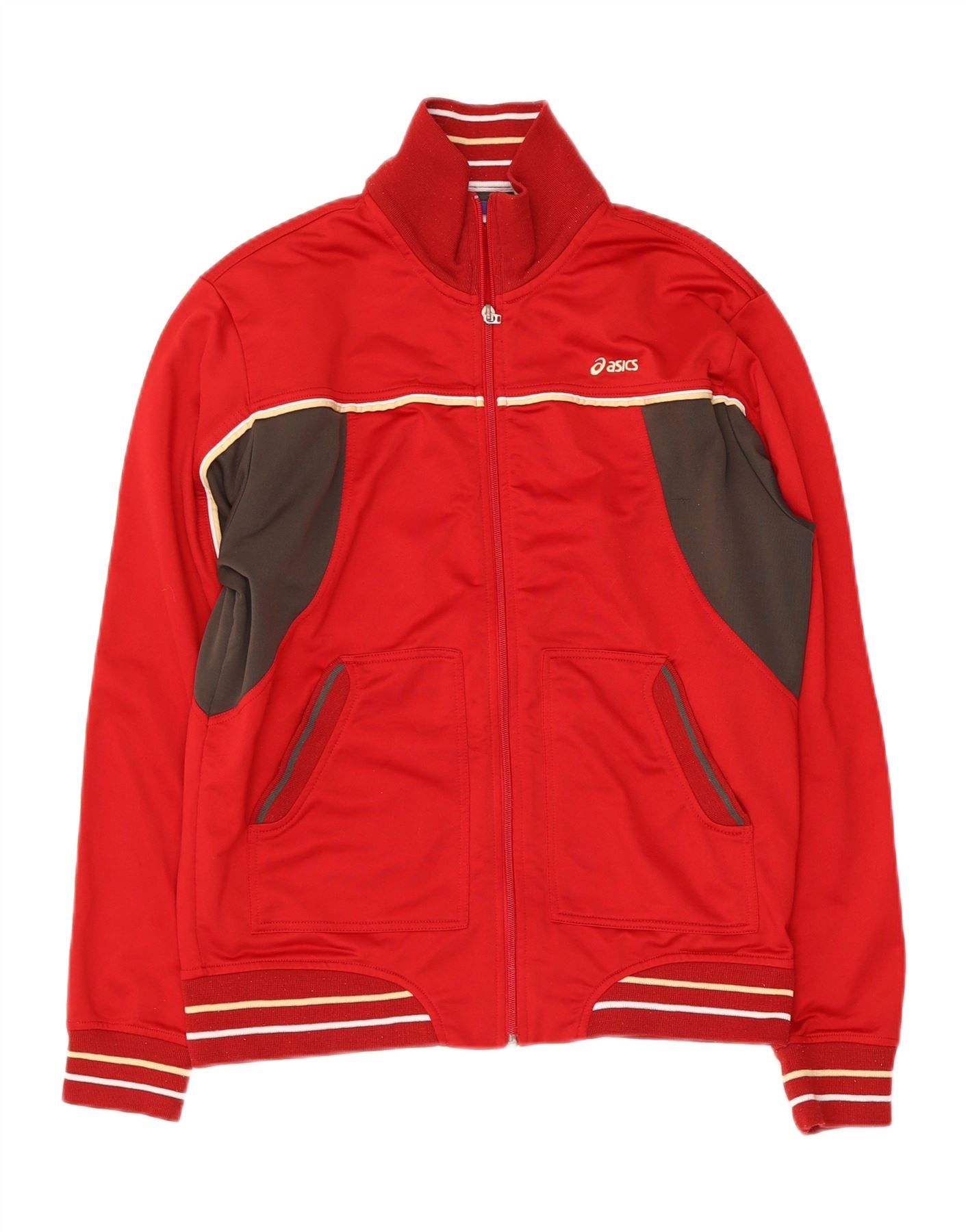 Home > Vêtements Asics vintage > Vêtements Asics vintage pour hommes > Hauts de survêtement > ASICS Veste de survêtement pour homme en polyester color block rouge moyen