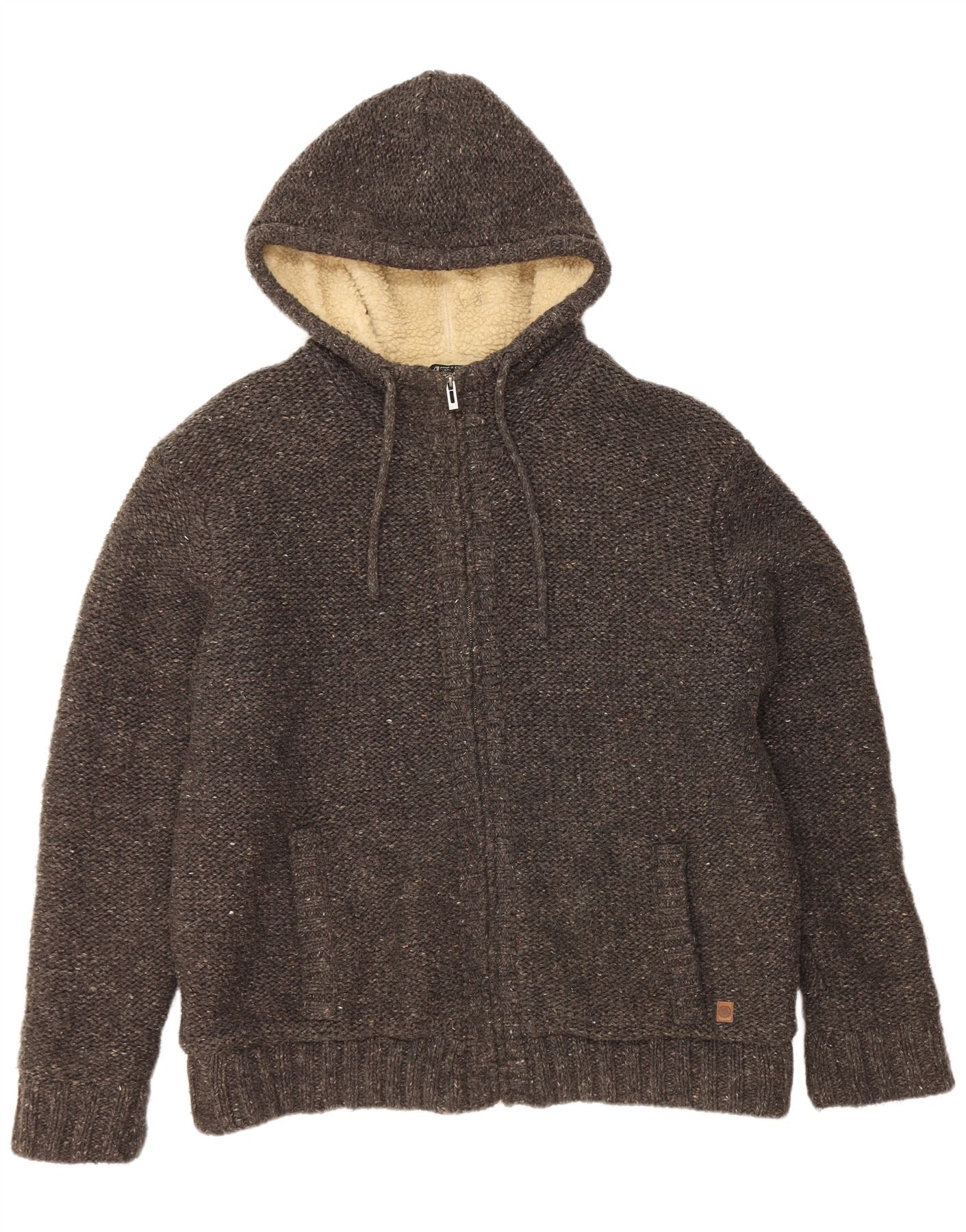 AUTHENTIQUE Pull Sherpa à Capuche pour Homme 2XL Acrylique Moucheté Gris